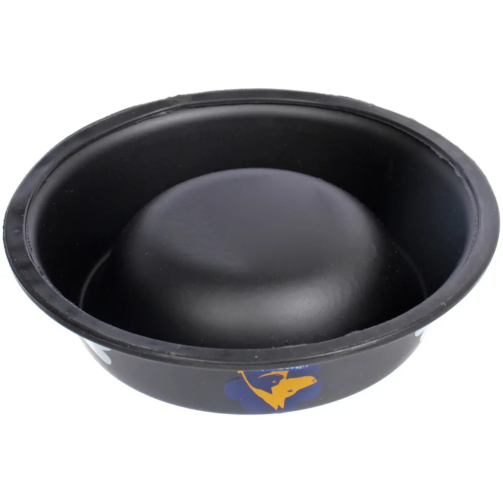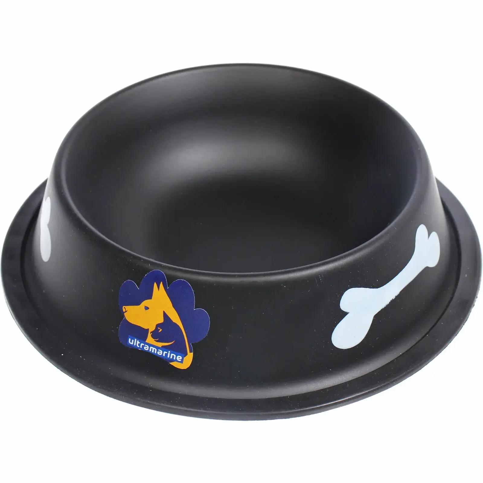 Размер миски составляет 16 см в диаметре, что делает её идеальной для небольших и средних пород собак. Миска выполнена из безопасного для здоровья материала, который не выделяет вредных веществ. Черный цвет с белыми и синими декоративными элементами придаёт ей стильный вид, а наклейка с изображением собаки добавляет индивидуальности.