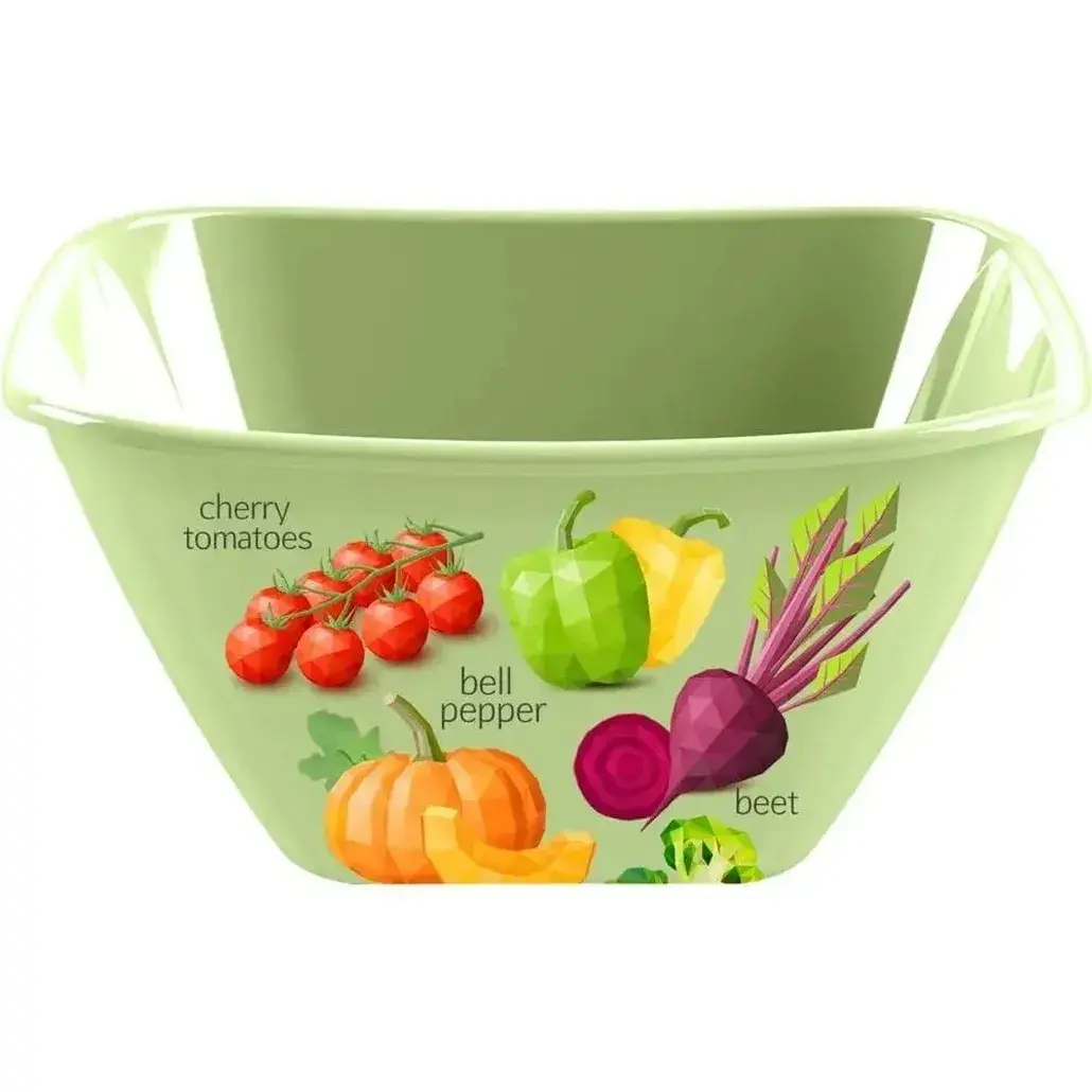 Миска пластиковая квадратная 2л, декор овощи-фрукты, цвет салатовый