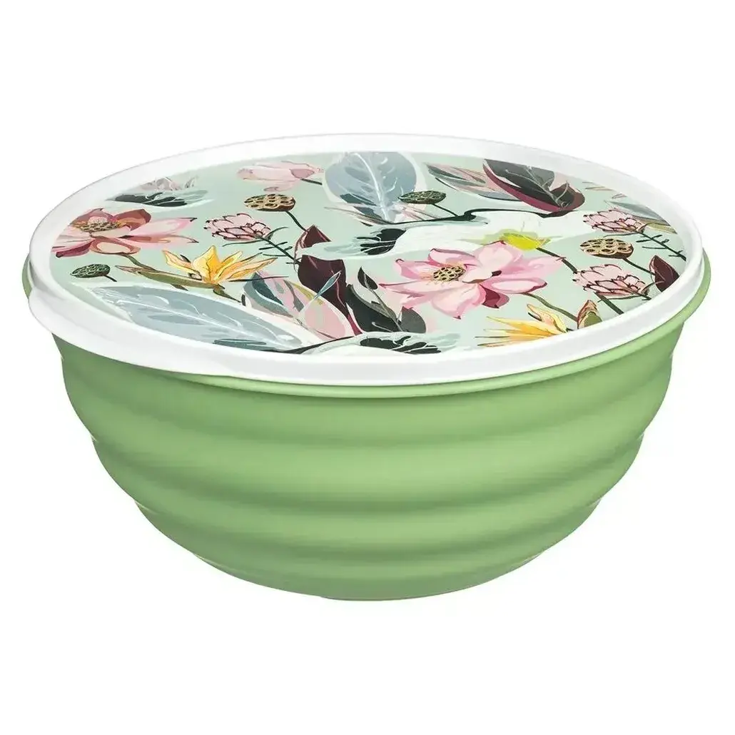 Практичная миска объемом 2,1 литра с герметичной крышкой создана для идеального хранения блюд. Зеленый цвет и цветочный декор на крышке добавят эстетики вашей кухне.