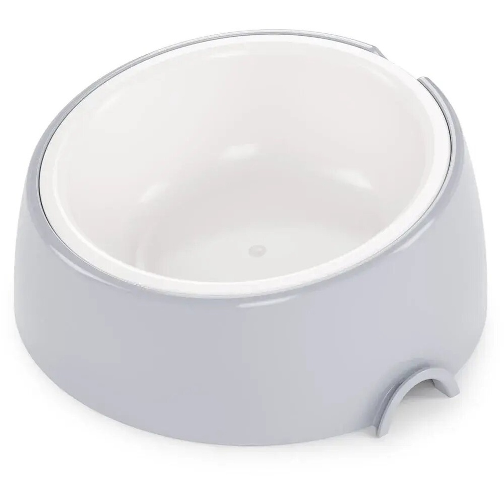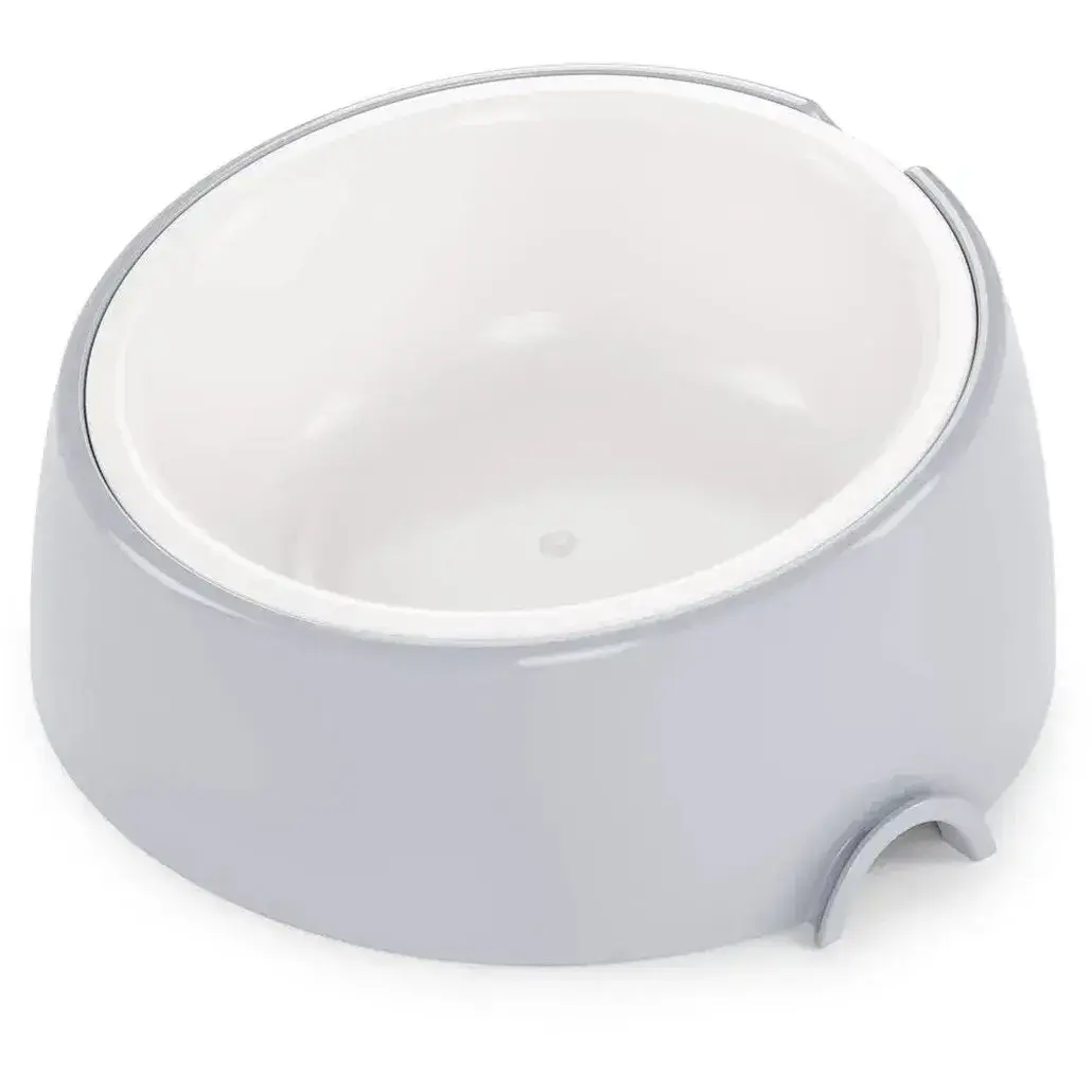 Миска изготовлена из безопасного пищевого пластика без острых краёв. Наклон 15° обеспечивает комфортное поглощение корма, а скруглённые края защищают усы питомца от повреждений. Серый цвет гармонирует с любым интерьером.