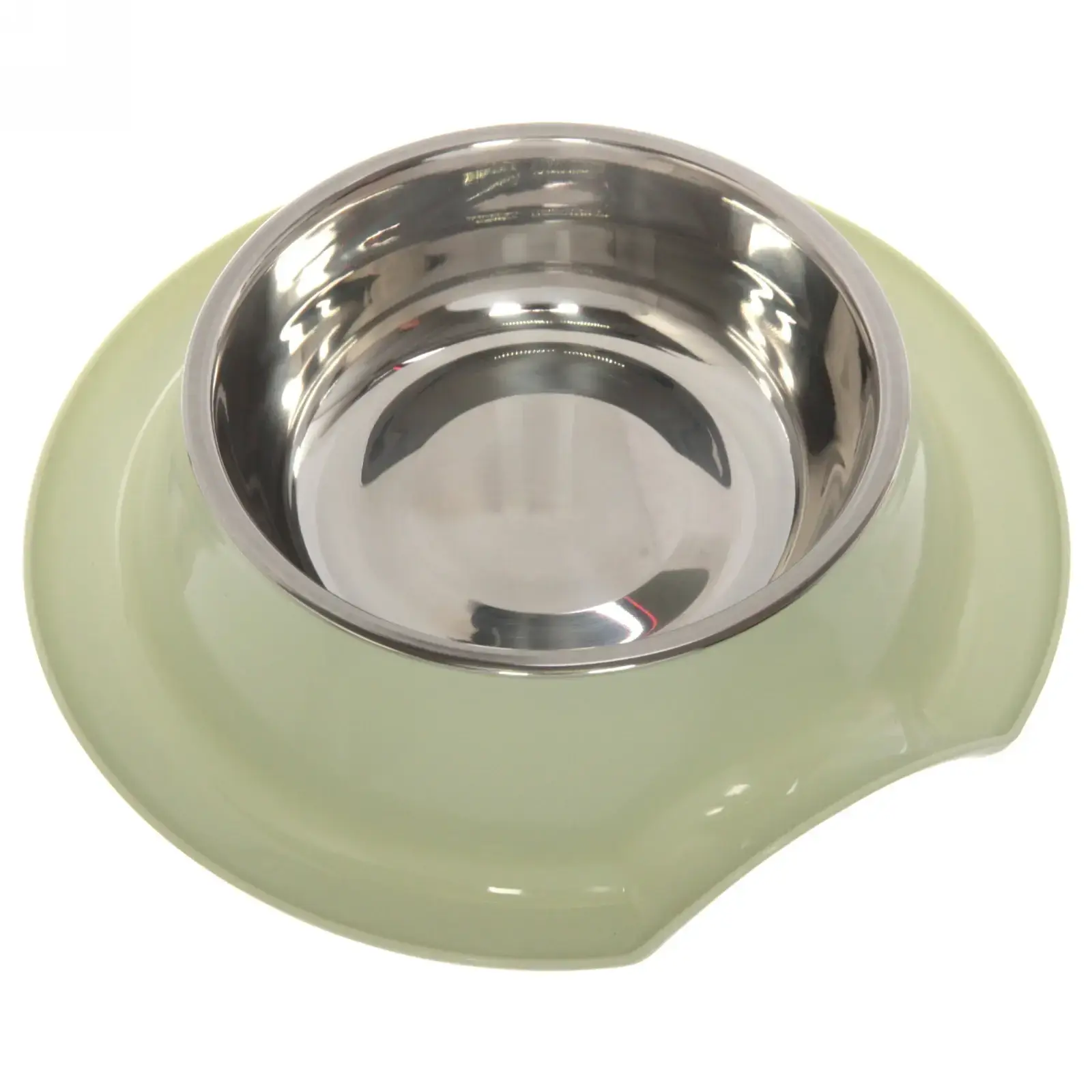 Миска для кошек и собак «Колор-Примула» с противоскользящей подставкой, 250 мл, 21,5х5,5 см, нержавеющая сталь, зеленый