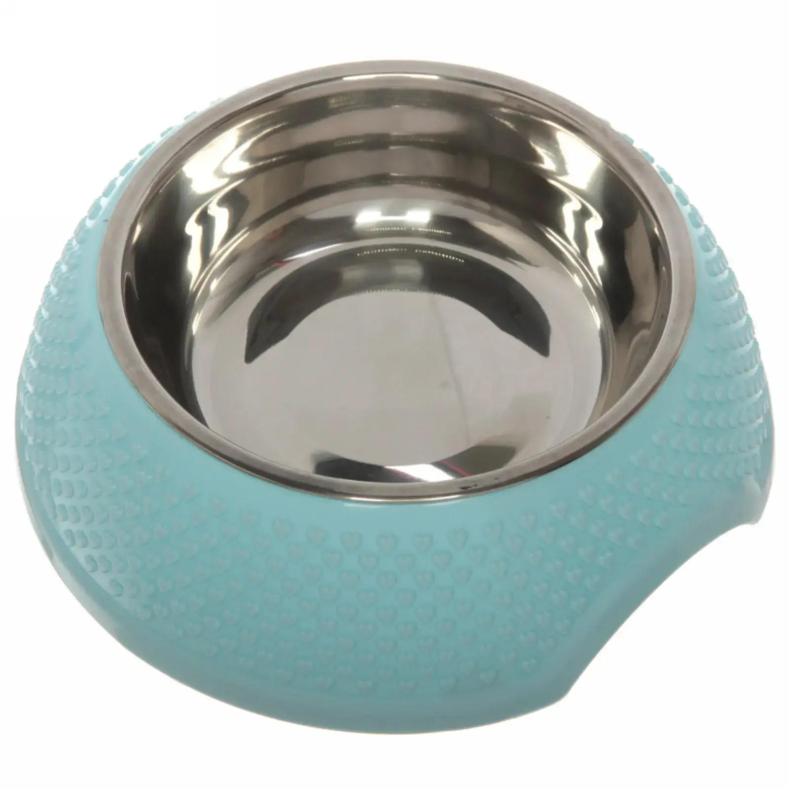Миска состоит из внутренней чаши, выполненной из нержавеющей стали, и внешней части из пластика. Это обеспечивает долговечность и легкость в уходе. Чашу легко вынуть для мытья, а противоскользящая подставка с резиновыми вставками предотвращает перемещение миски по полу во время еды. Миска подходит как для воды, так и для корма, что делает её универсальным аксессуаром для вашего питомца.