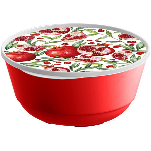 Миска пластиковая 2л «Bergamo» — это идеальное решение для хранения и сервировки ваших любимых блюд. Благодаря плотно закрывающейся крышке, вы можете быть уверены, что ваши продукты останутся свежими и ароматными. Яркий красный цвет добавит яркости на вашу кухню, а стильный IML-декор на крышке с изображением гранатов и зеленых листьев станет настоящим украшением вашего стола.