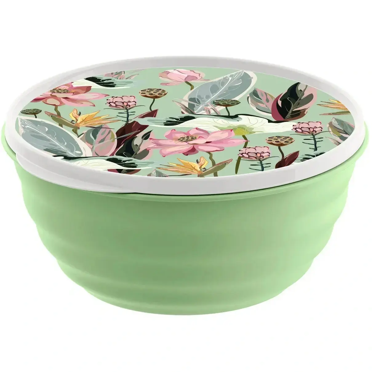 Миска пластиковая 3,2л с крышкой «Latina», коллекция Botanica, зелёный декор, удобная ручка