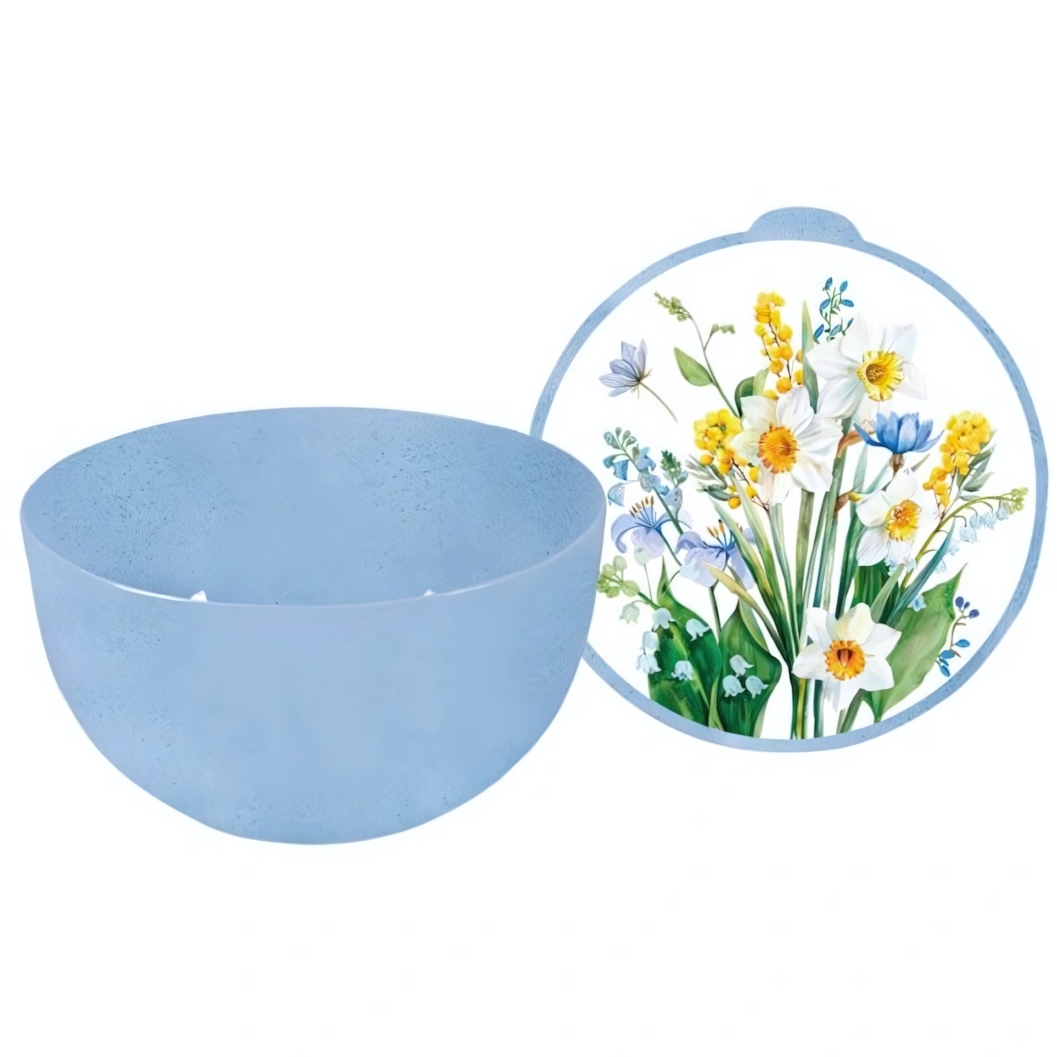 Декор нанесён по технологии IML, благодаря чему рисунок с весенними цветами сохраняет яркость и аккуратный вид. Объём 3 л оптимален для семьи: миска не занимает много места в холодильнике, при этом вмещает достаточное количество продуктов.