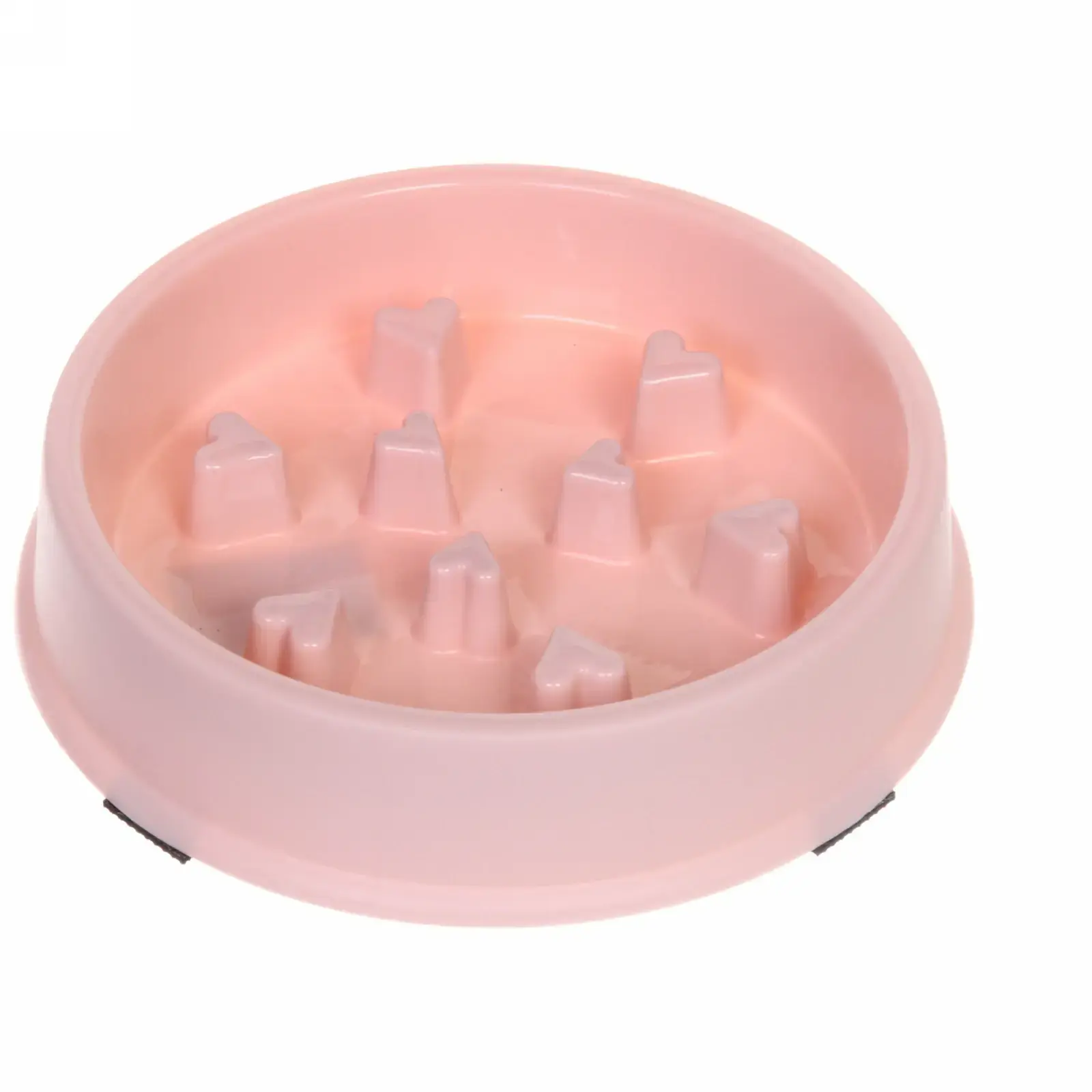 Миска для медленного кормления 'Колор-Сердечки', пластик, 19,5*18*4,3см, нежно-розовая