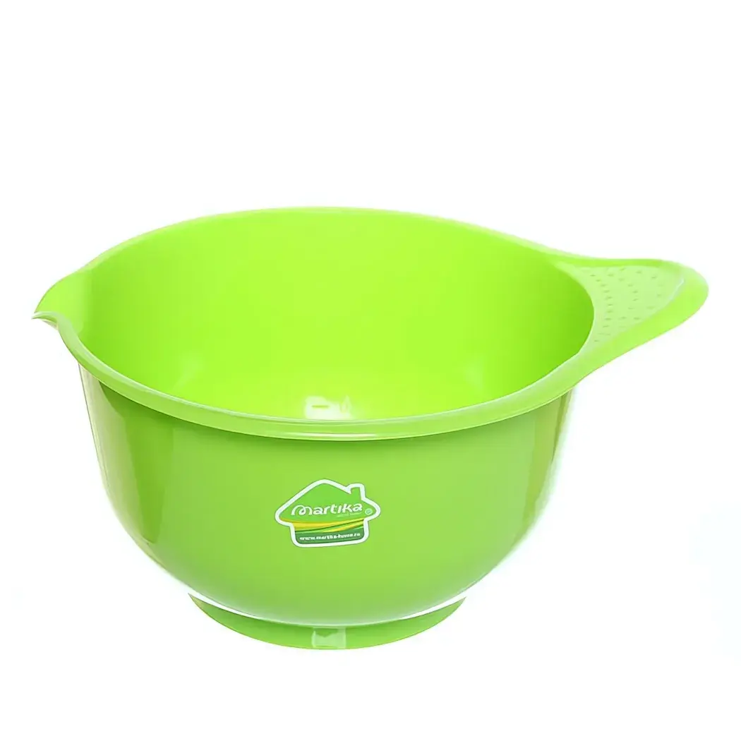 Эта ярко-зеленая миска объемом 3,6 литра станет незаменимым помощником на вашей кухне. Благодаря высоким стенкам, вы сможете легко и удобно смешивать продукты с помощью миксера, не беспокоясь о разбрызгивании. Носик на краю миски позволяет аккуратно выливать жидкости, что делает процесс приготовления еще более комфортным.