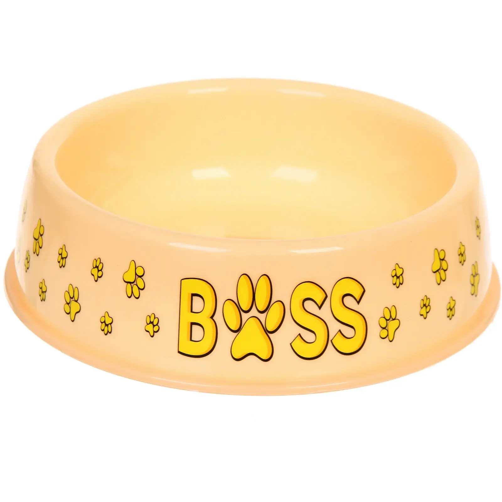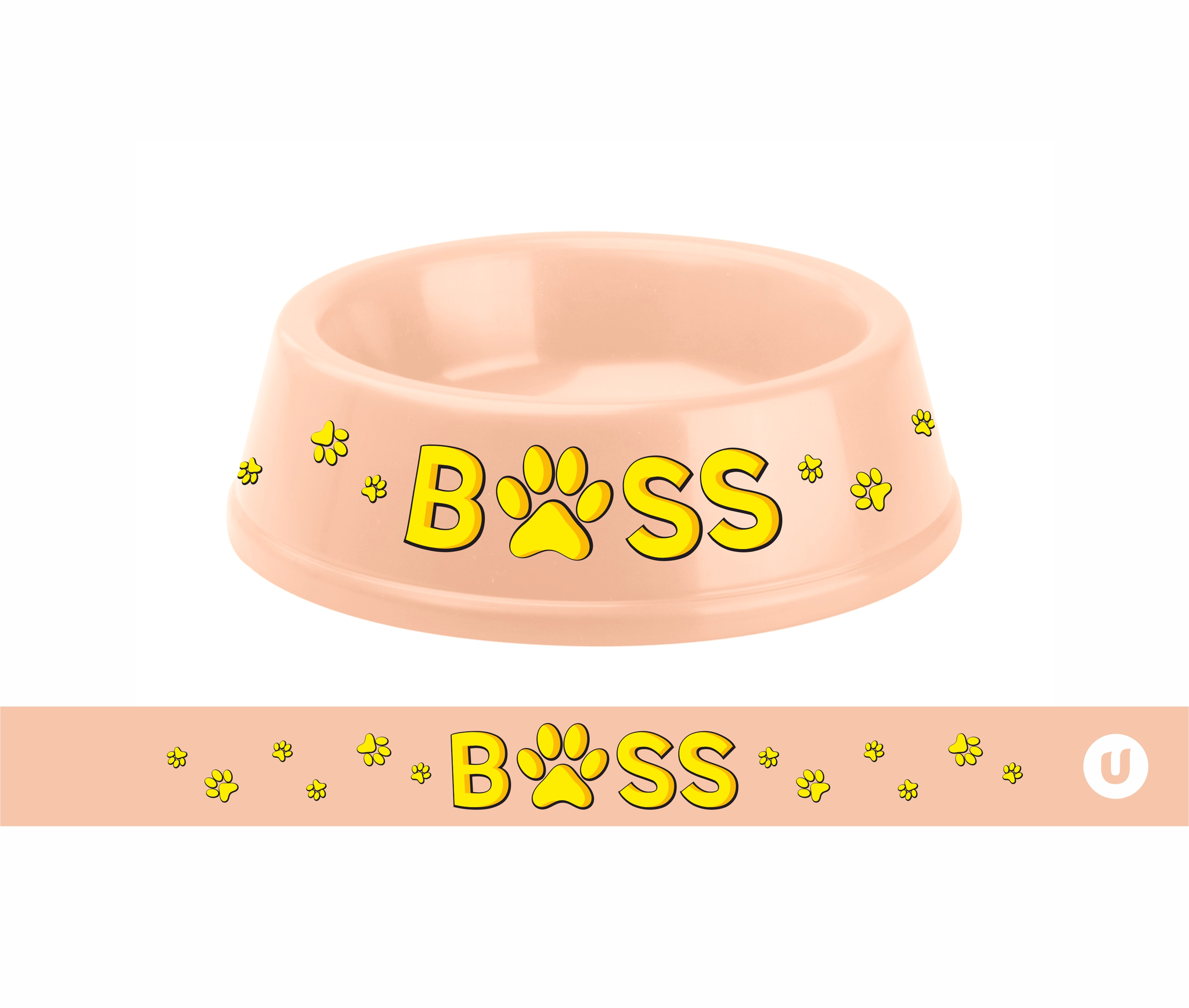 Миска имеет округлую форму и низкие стенки, что облегчает доступ к пище или воде. Яркий логотип «BOSS» и следы лап добавляют индивидуальности и делают её привлекательной для владельцев домашних животных. Она подходит для собак всех размеров, обеспечивая комфортное кормление.
