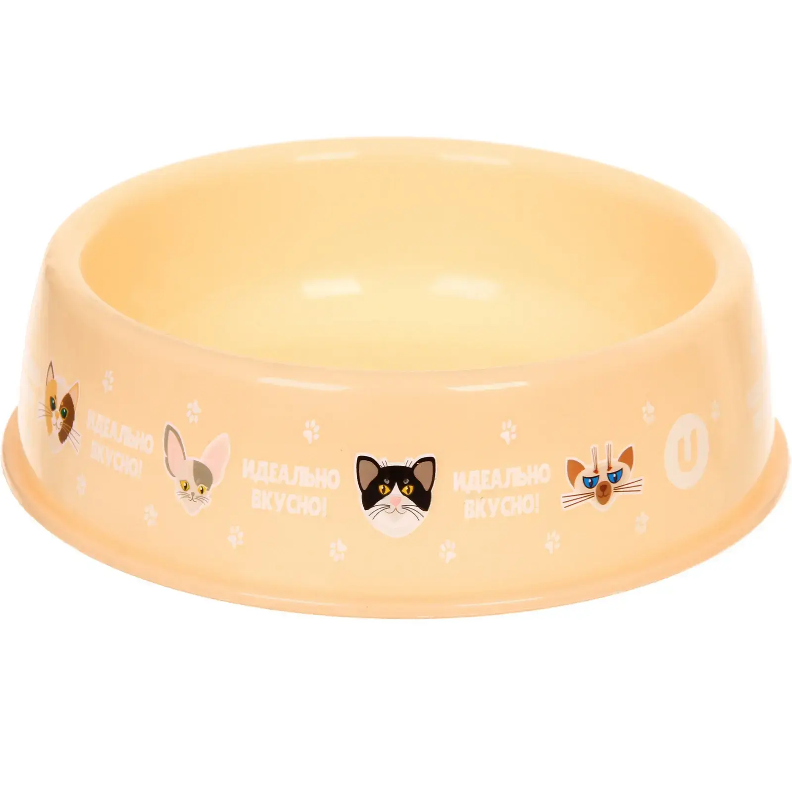 Позаботьтесь о комфорте своего любимца с практичной миской из прочного пластика. Её яркий дизайн с забавными кошками и надписью «ИДЕАЛЬНО ВКУСНО!» не только порадует глаз, но и создаст позитивную атмосферу во время кормления.