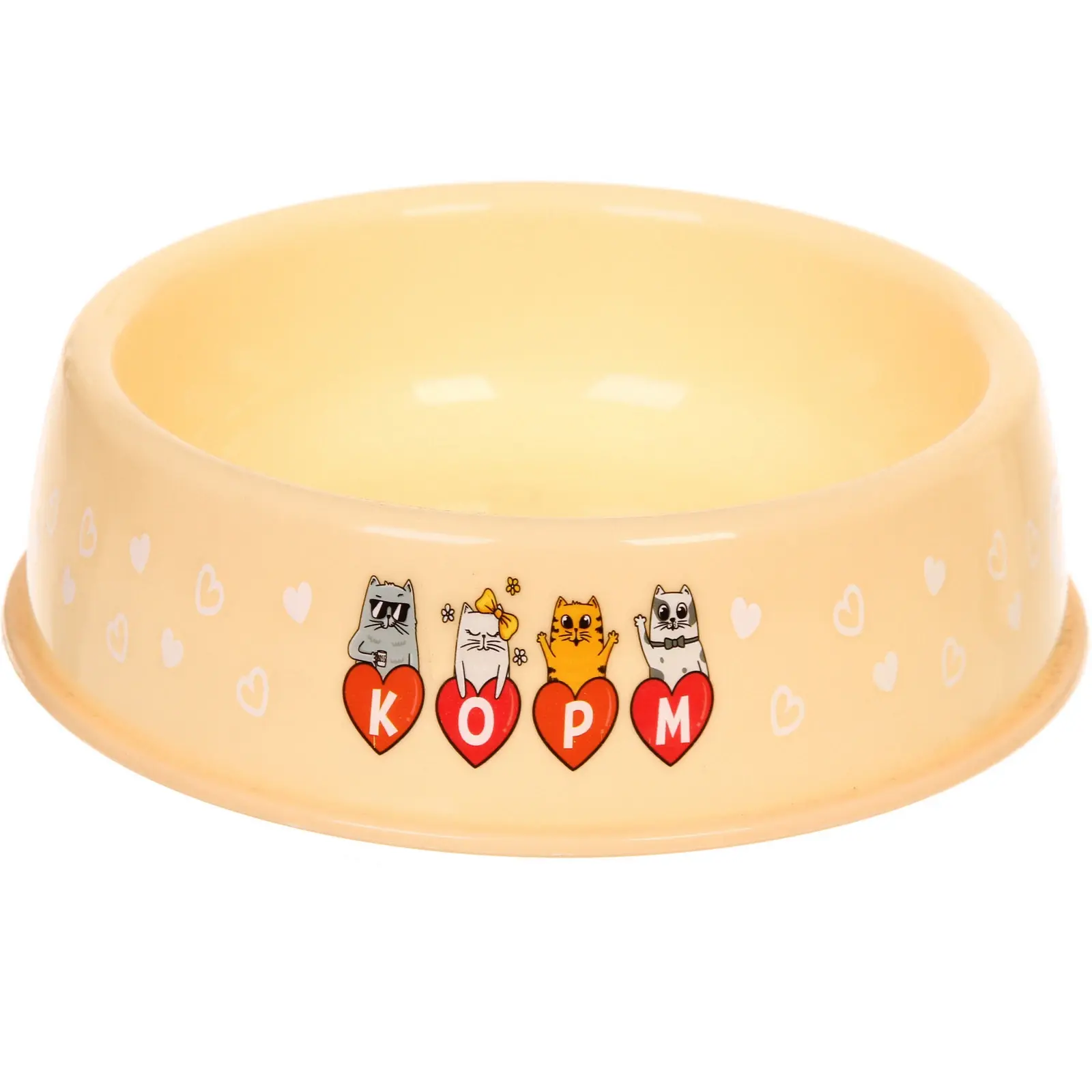 Миска для животных пластиковая, 700 мл, антискользящее дно, дизайн с кошками и сердечками, 21×6,5 см