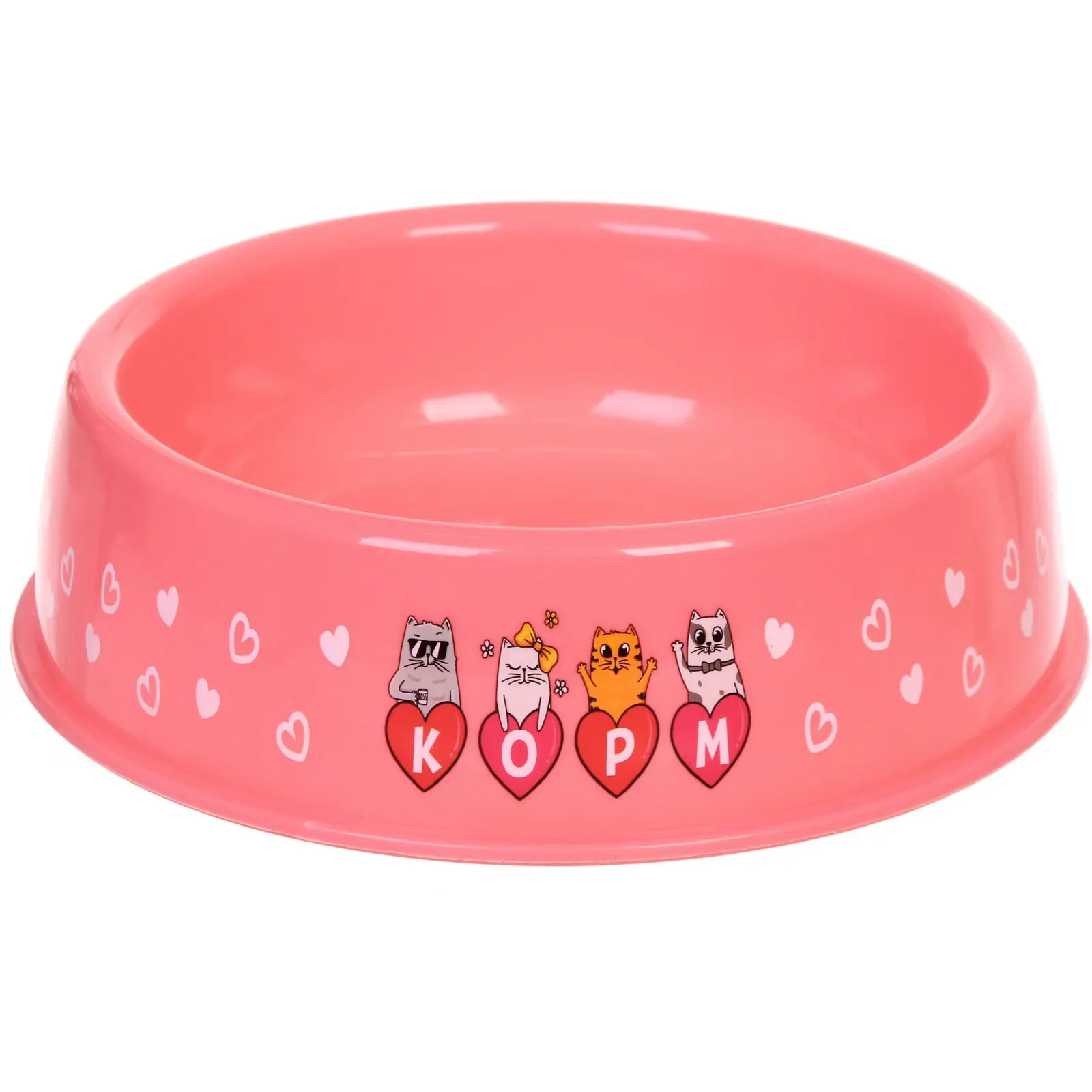 Декоративная надпись «КОРМ» и сердечки добавляют миске игривый характер, делая процесс кормления более приятным для питомца и владельца. Удобные габариты позволяют использовать аксессуар как дома, так и в поездках.
