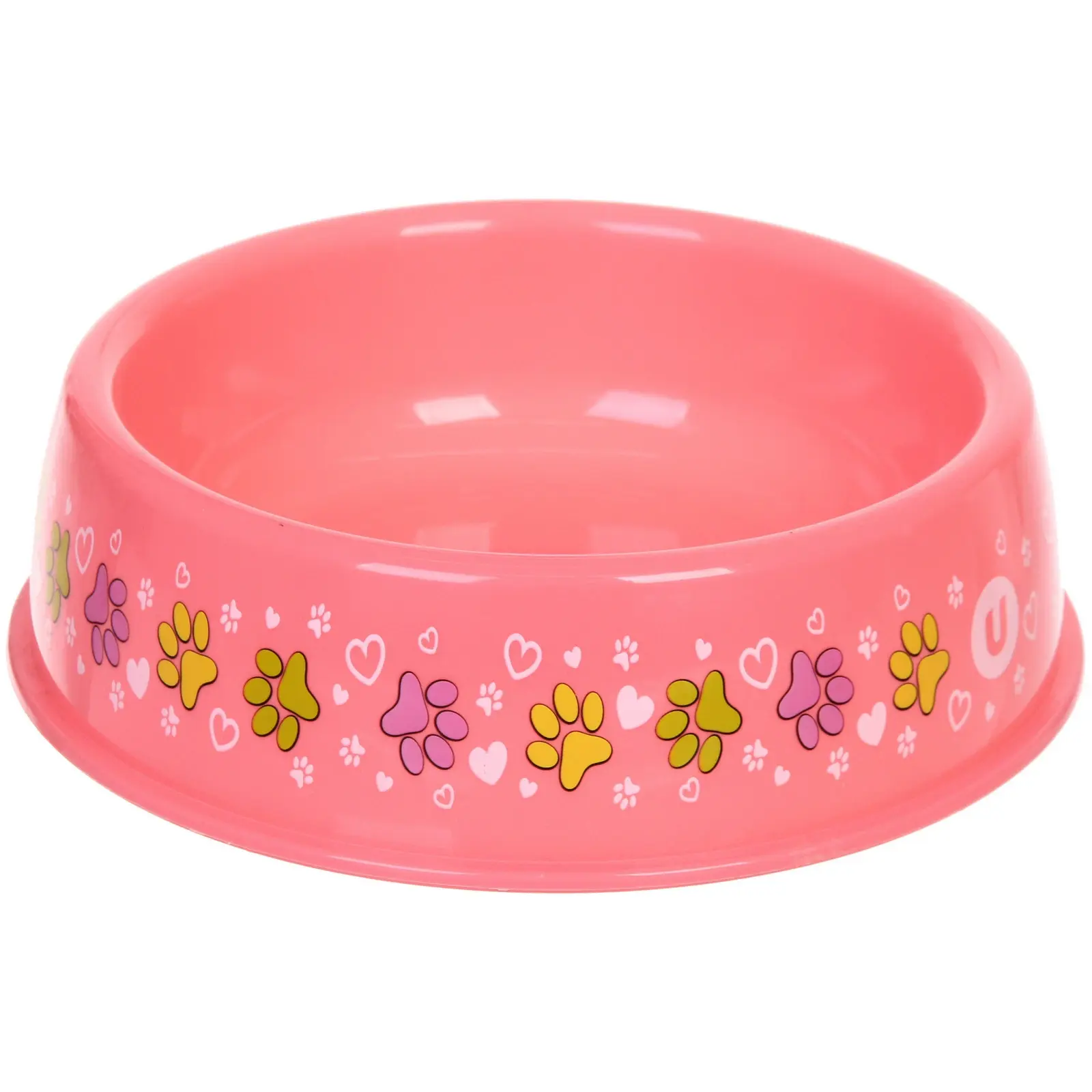 Миска пластиковая «Лапки царапки» для питомцев, розовая, 21х6,5 см, 700 мл, декор лапки и сердечки