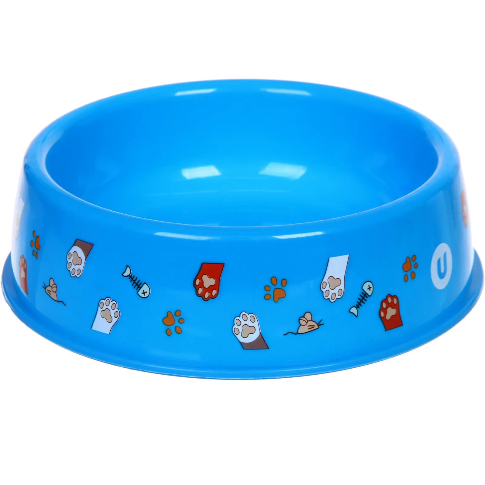Миска для животных пластиковая, 700 мл, небесно-синяя с рисунками лап, 21х6,5 см