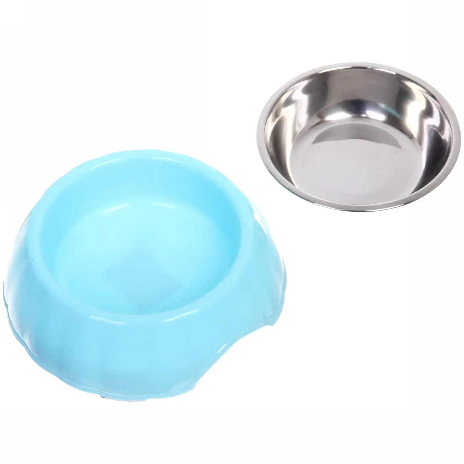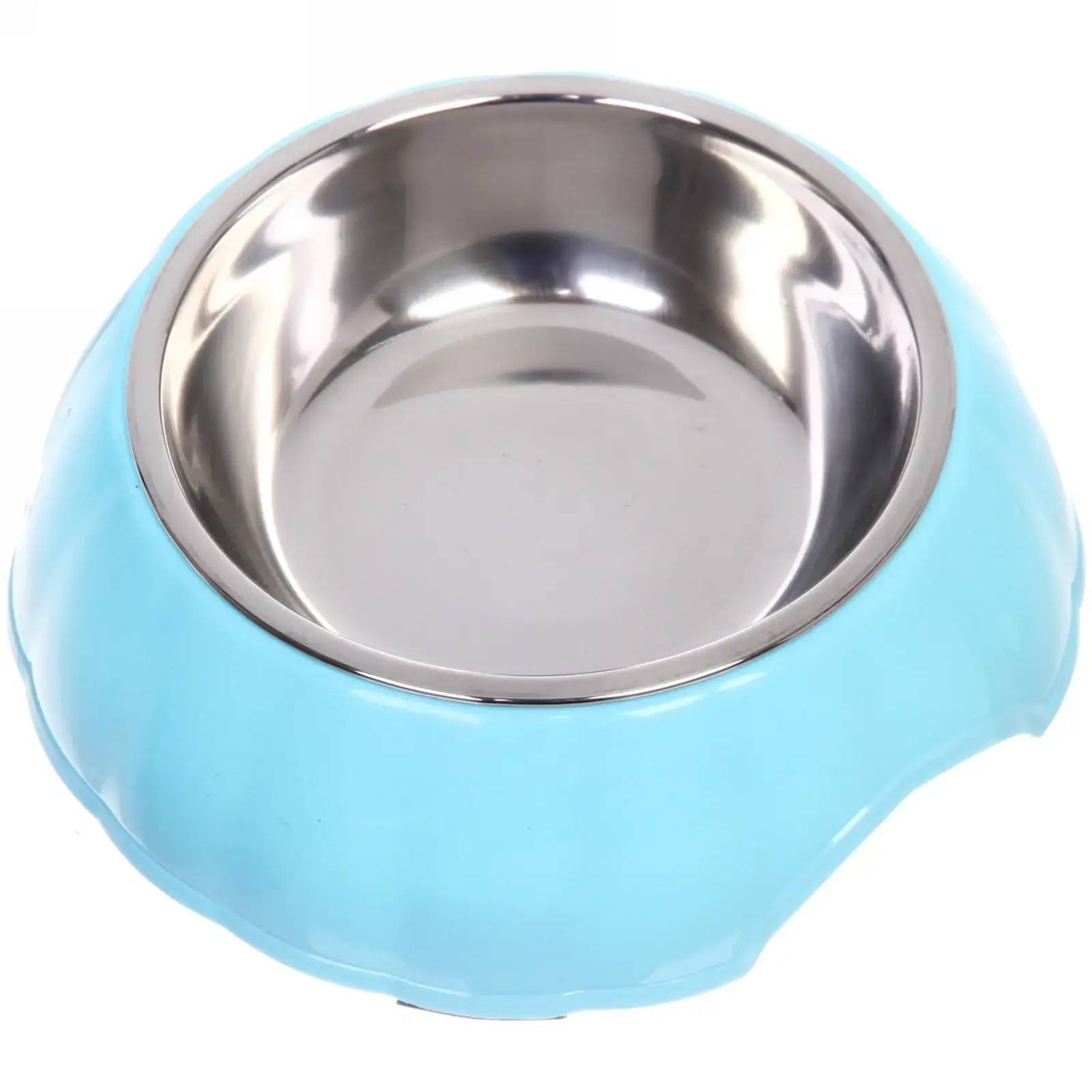 Миска для животных «Классик» с металлической чашей, пластиковая подставка, противоскользящая, 16х5 см, голубая