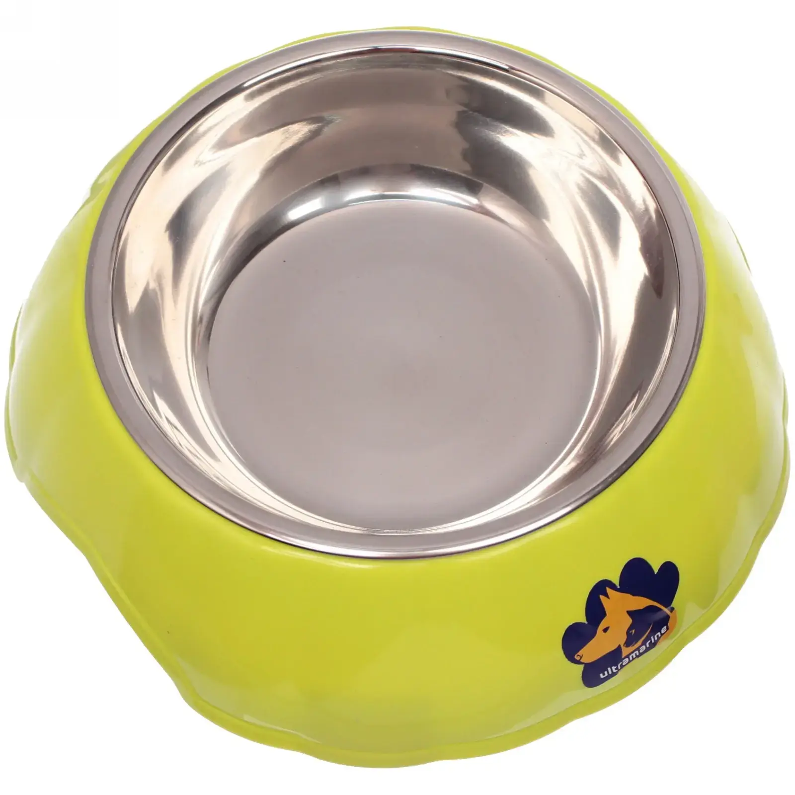 Миска для животных «Классик» с металлической чашей, противоскользящая подставка, 16х5 см, зеленый