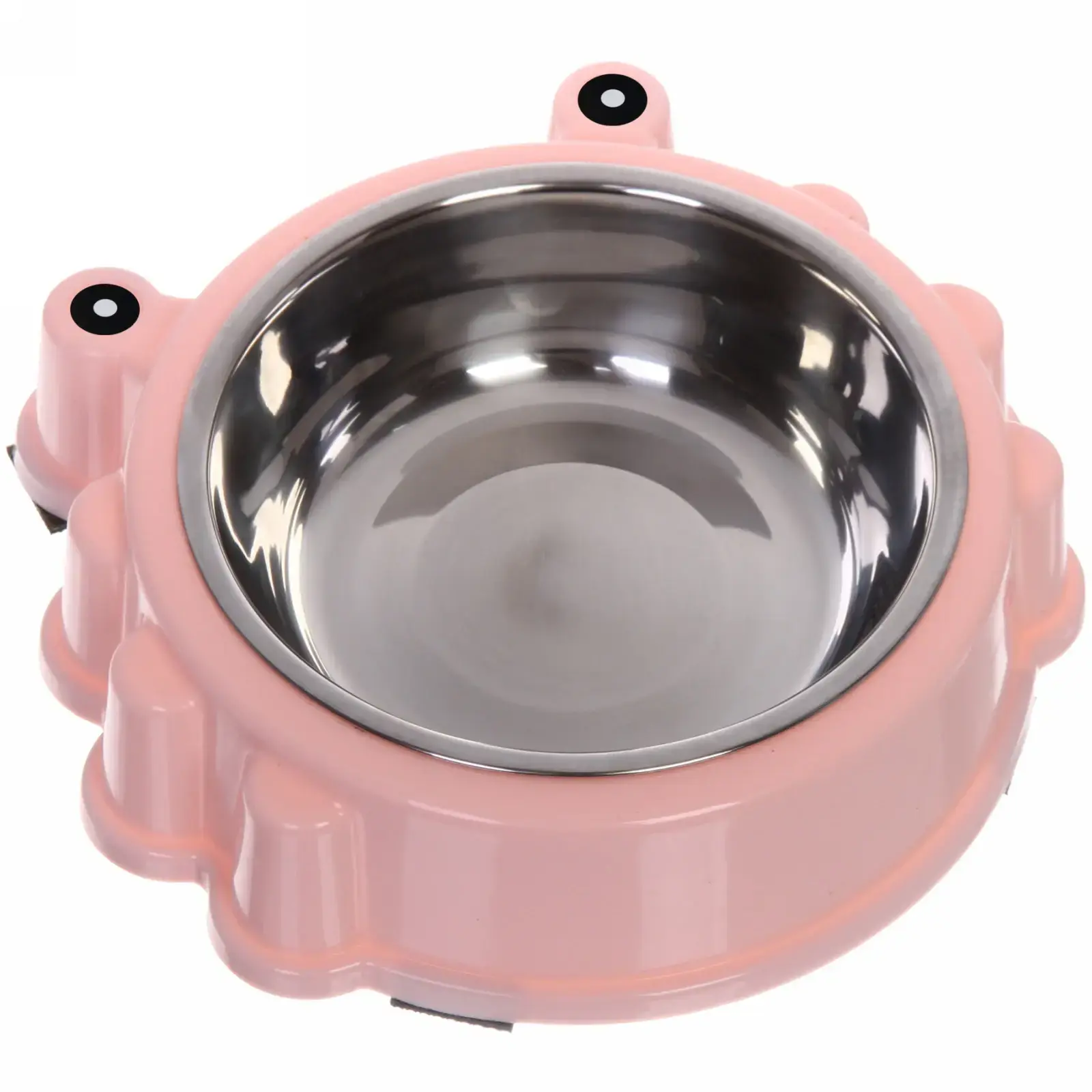 Миска для животных «Колор-Лягушка» с металлической чашей, пластиковая подставка, 20х5 см, 250 мл, нежно-розовый