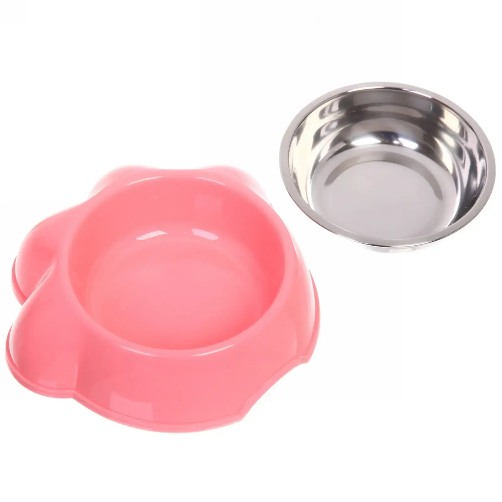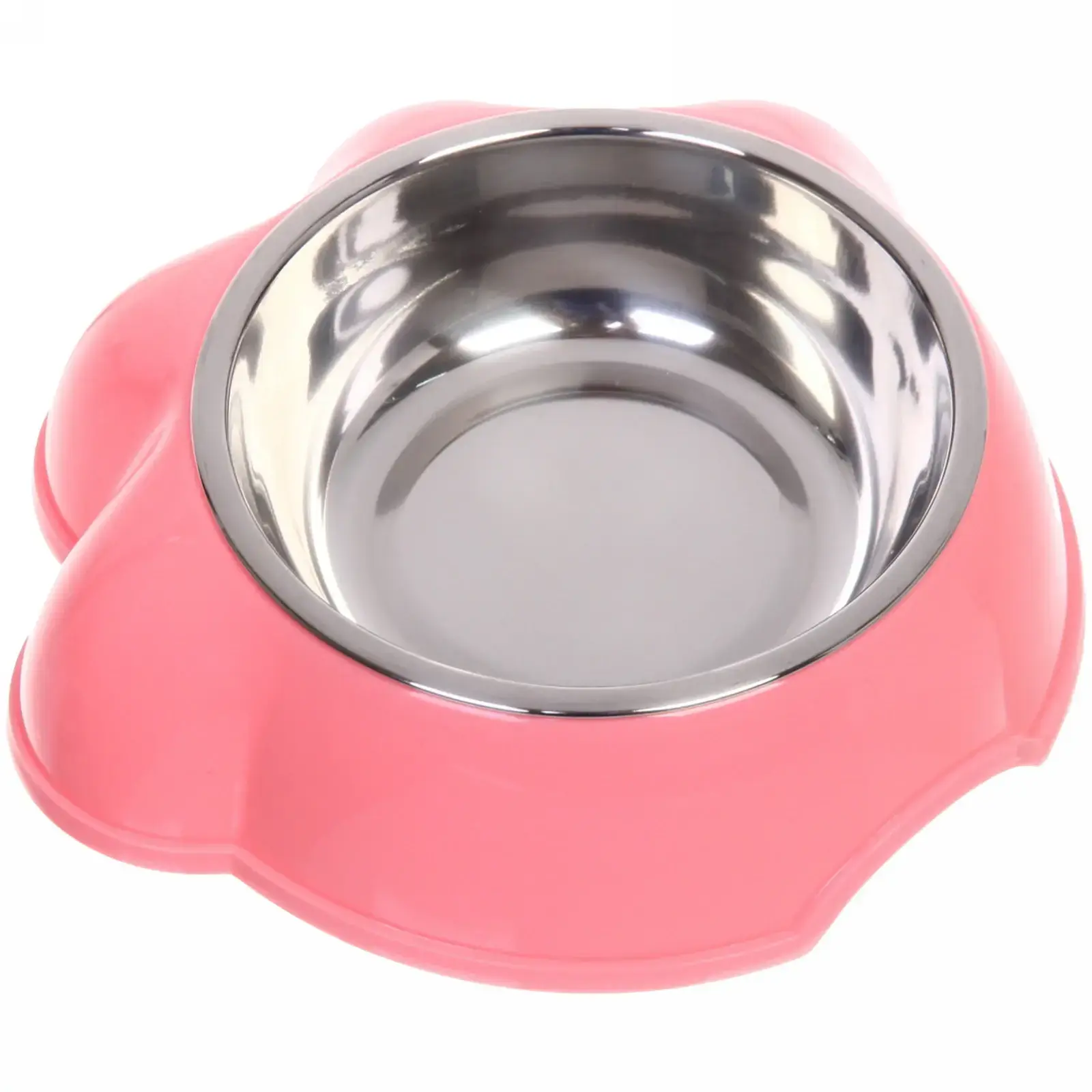 Миска для животных «Лапка» с металлической чашей, пластиковая подставка, 16х4,6 см, розовый