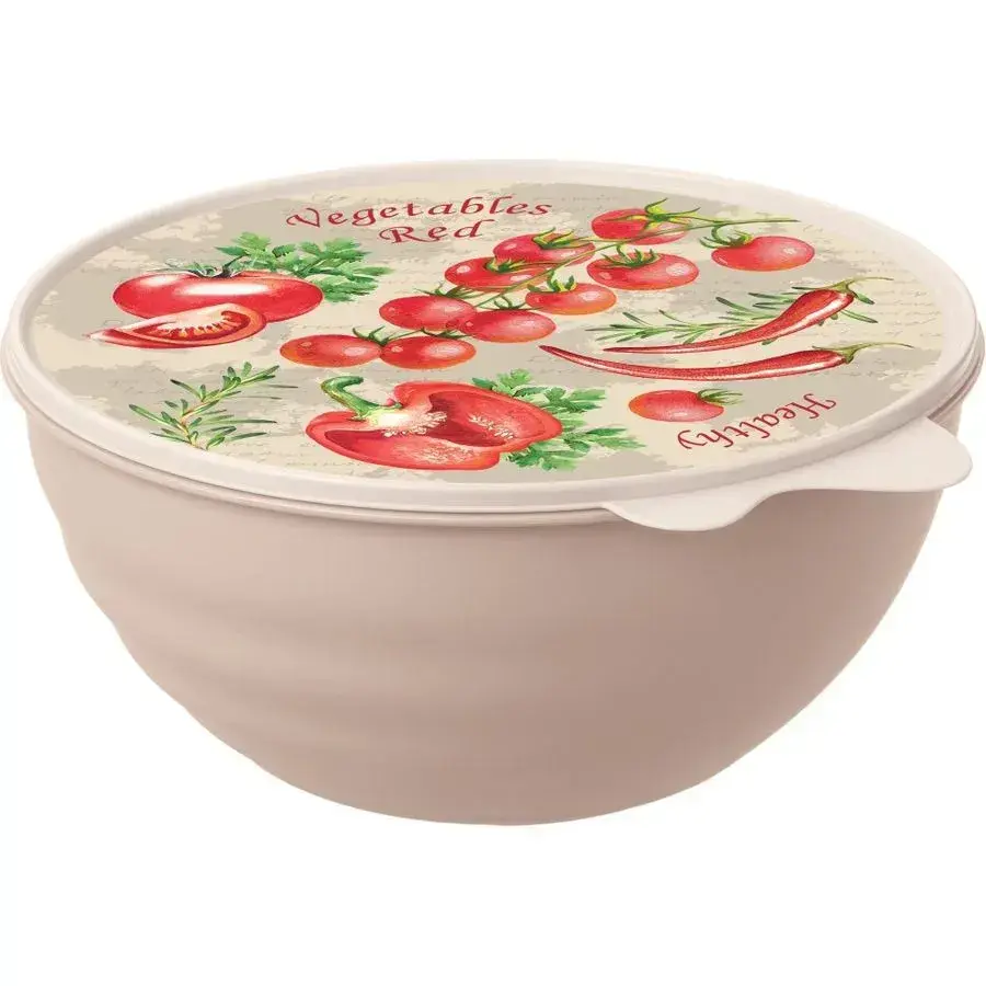 Миска с крышкой "WAVE" 2,8л, бежевая, пластиковая, с декором овощей
