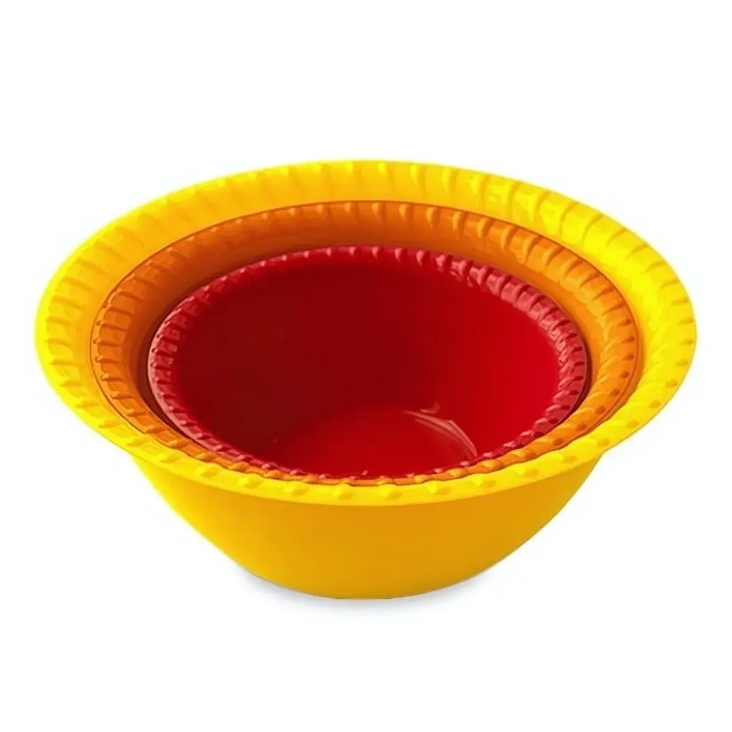 Выбирая эти миски, вы получаете не только практичность, но и стиль. Яркие цвета (желтый, оранжевый и красный) добавят радости в каждую трапезу. Рифленые края обеспечивают надежный захват, что делает их удобными в использовании. Эти миски идеально подходят для смешивания ингредиентов, подачи блюд и хранения продуктов, что делает их универсальным решением для любой кухни.