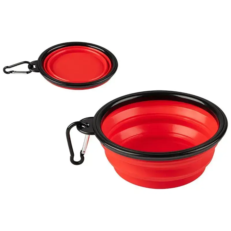 Миска складная силиконовая для животных, 300 мл, с карабином, красная с черным