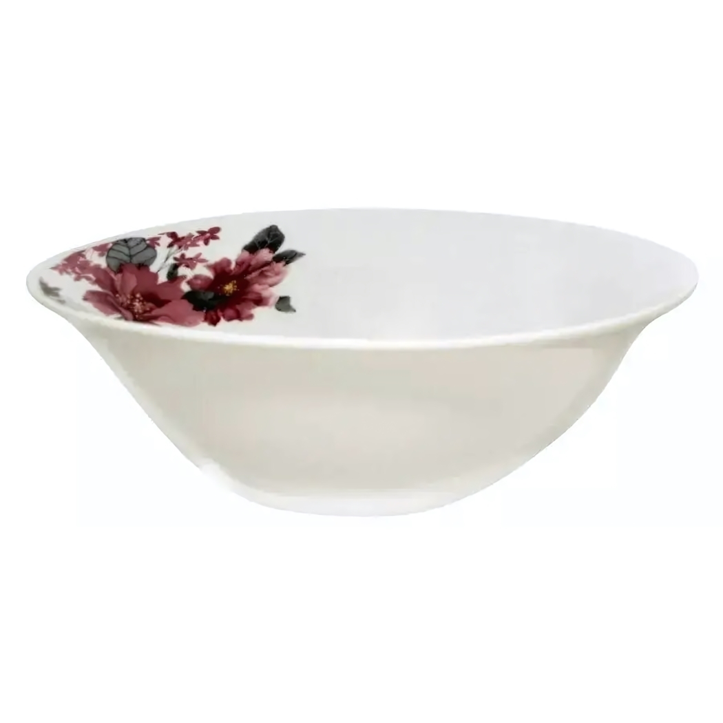 Глубокая керамическая миска с цветочным декором станет идеальным выбором для подачи первых блюд, салатов и десертов. Изящный дизайн с розово-красными узорами создаст праздничное настроение за обеденным столом.