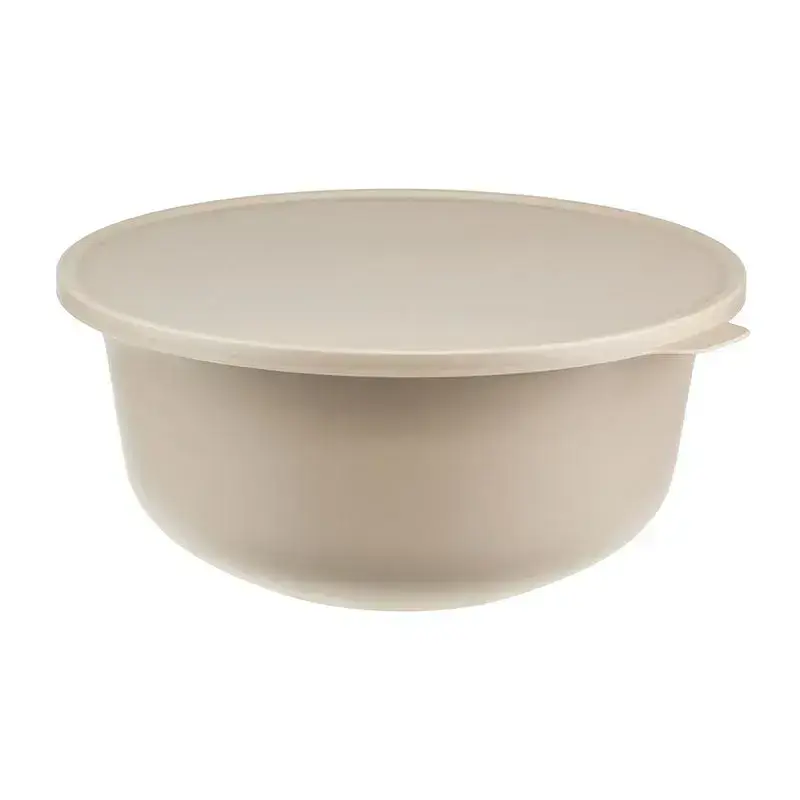 Изготовлен из высококачественного пластика без постороннего запаха. Цвет латте — нейтральный оттенок, который не выгорает со временем. Гладкие стенки предотвращают налипание остатков пищи. Удобные ручки по бокам обеспечивают комфортный перенос даже наполненной емкости.