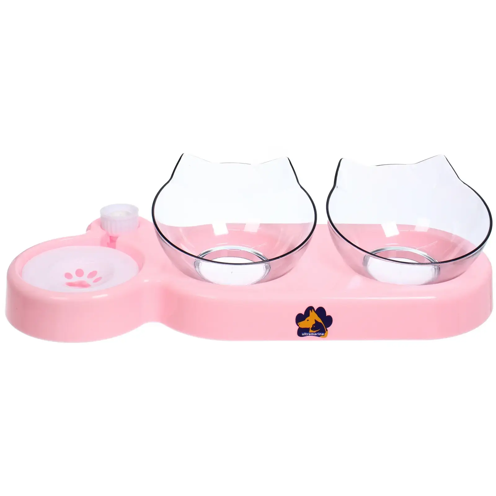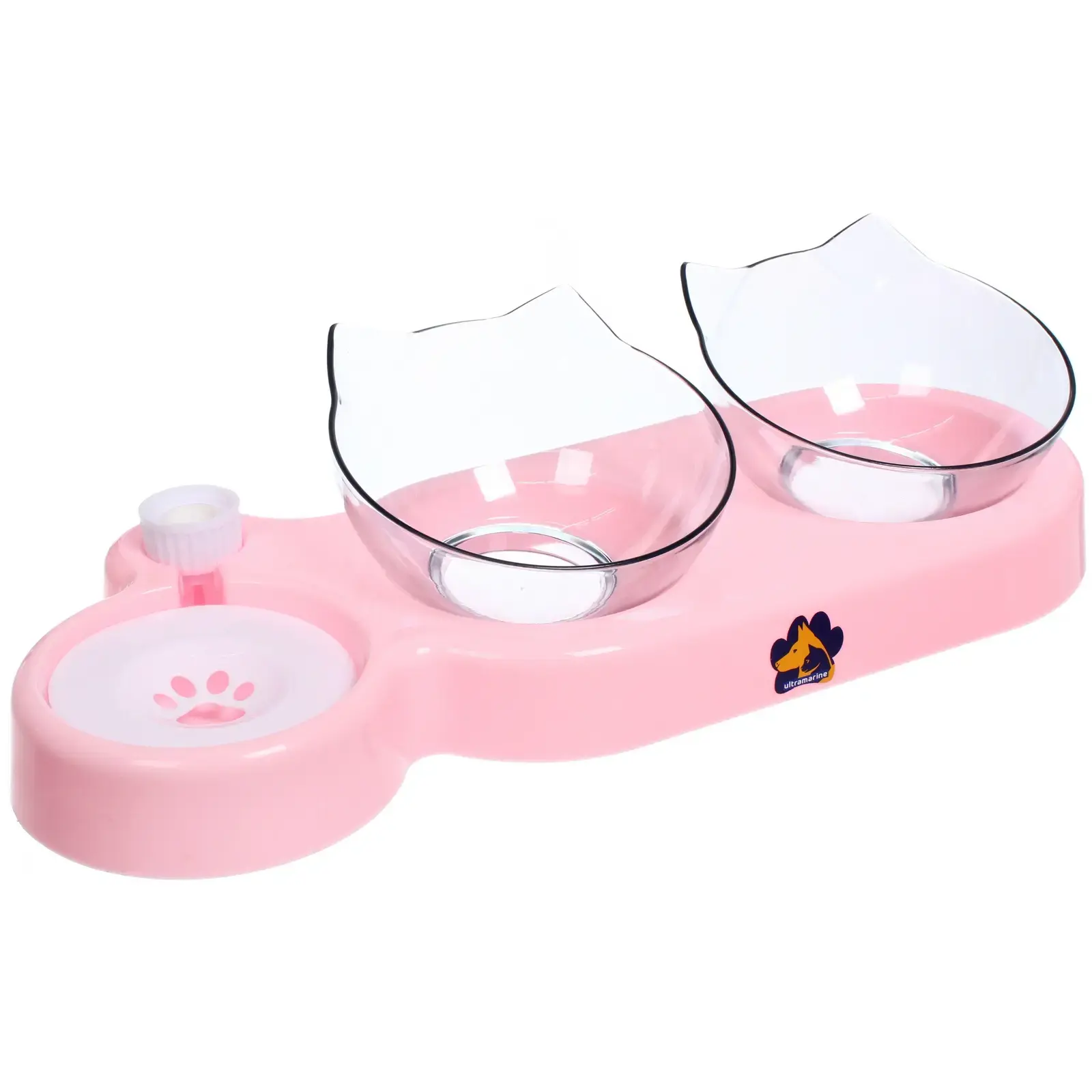 Миски предназначены для удобного кормления кошек и мелких собак. Они легко устанавливаются на подставку, что предотвращает их опрокидывание во время еды. В комплект входят две миски объемом 250 мл каждая, что позволяет одновременно предлагать питомцу еду и воду. Дозатор, встроенный в подставку, обеспечивает легкость в наливании воды, что особенно удобно для активных животных.