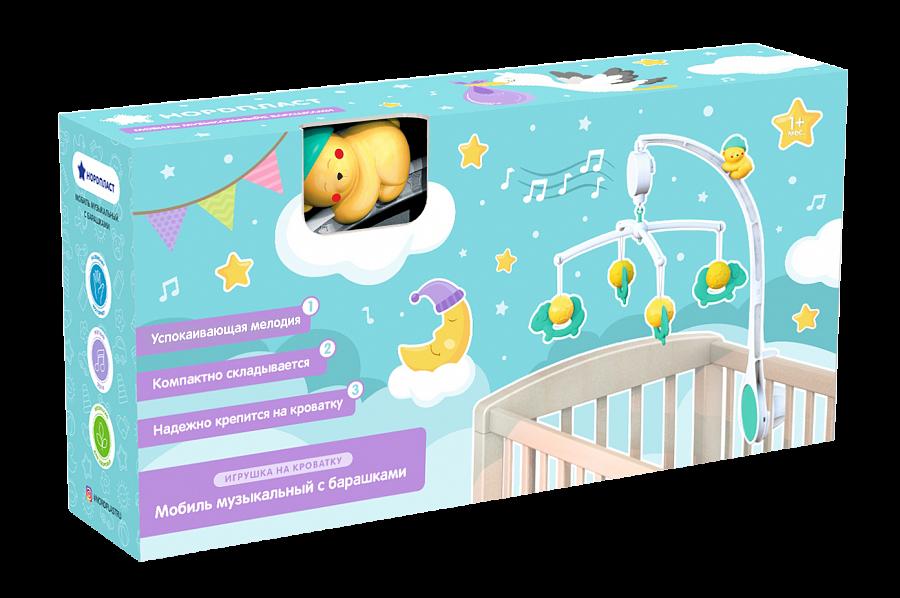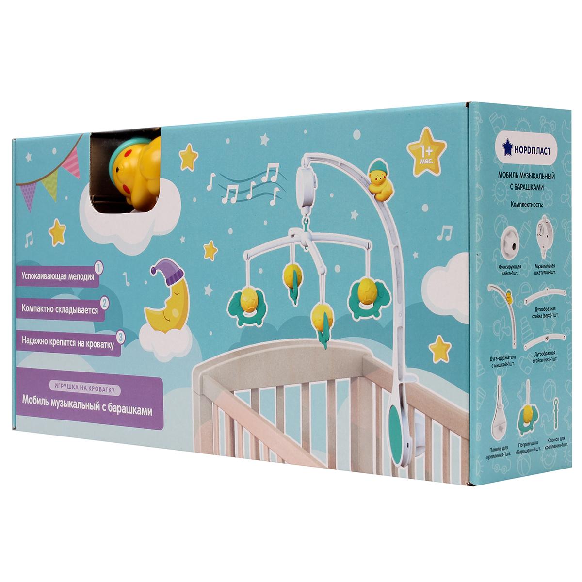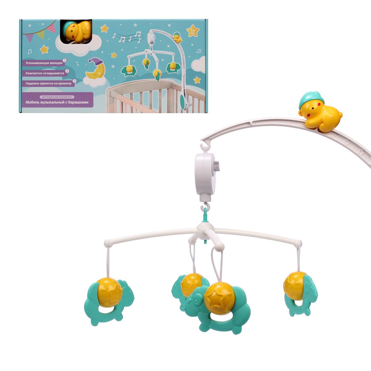 Музыкальный мобиль с успокаивающей мелодией, 4 съемных игрушки-барашка, крепление на кроватку