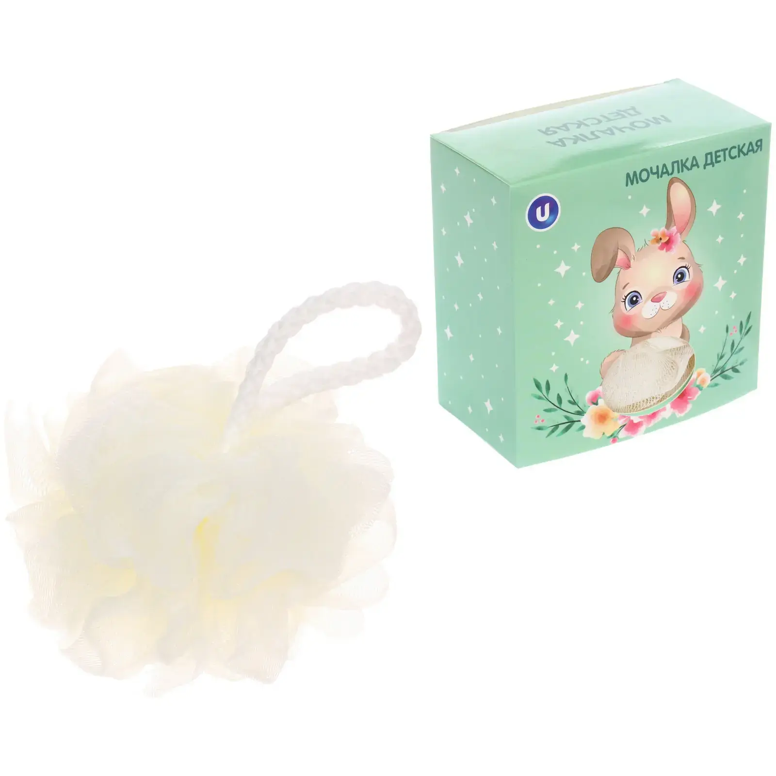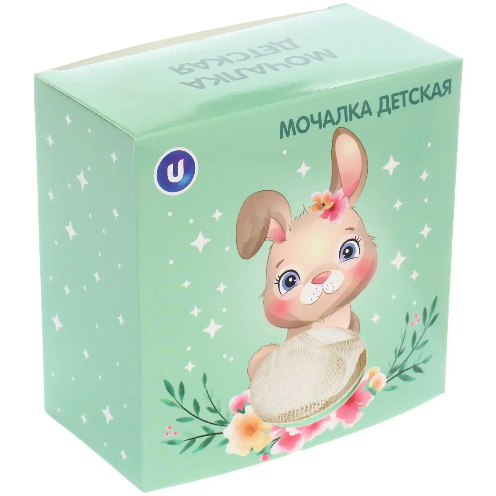 Размер мочалки составляет 10 см в диаметре, что делает её идеальной для детских ручек. Упаковка выполнена в светло-зеленом цвете с изображением милого зайца, что добавляет товару детскую тематику и делает его привлекательным для родителей и детей. Мочалка легкая, весит всего 30 грамм, что позволяет легко использовать её в любых условиях.