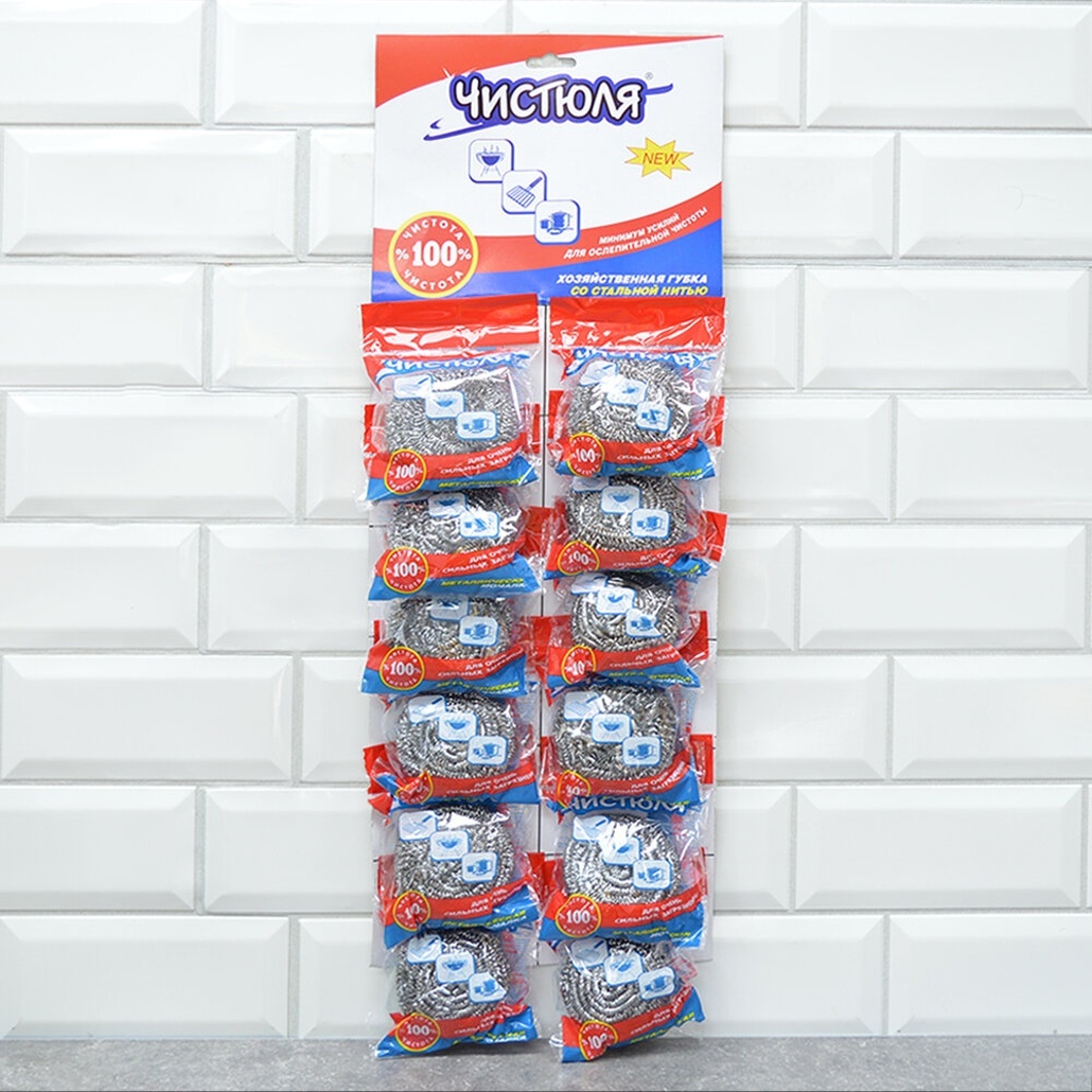 Используйте эту стальную мочалку для мытья кастрюль, сковород, грилей, металлических поверхностей и других предметов, требующих мощной (но бережной) очистки. Она отлично справляется с жиром, застарелыми загрязнениями и при этом не оставляет царапин. Удобная и практичная, она поможет вам сохранить чистоту на кухне без лишних затрат времени и сил.