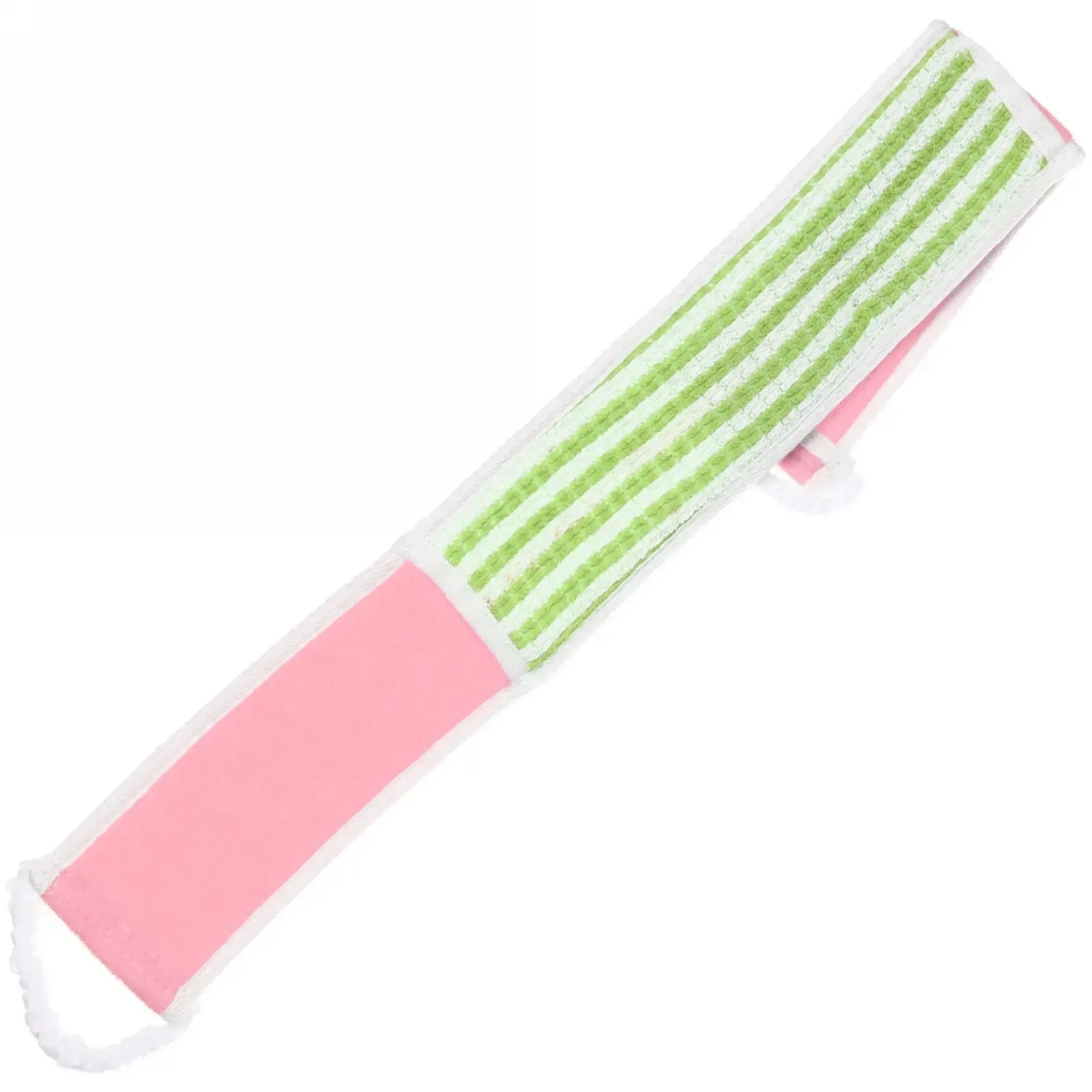 Мочалка выполнена из текстиля, что обеспечивает её прочность и долговечность. Дизайн с полосами в розовом и зеленом цветах не только привлекателен, но и функционален. Удобная петля на одном конце позволяет легко хранить мочалку, подвесив её в ванной комнате. Размеры 68х8 см делают её идеальной для комфортного использования.