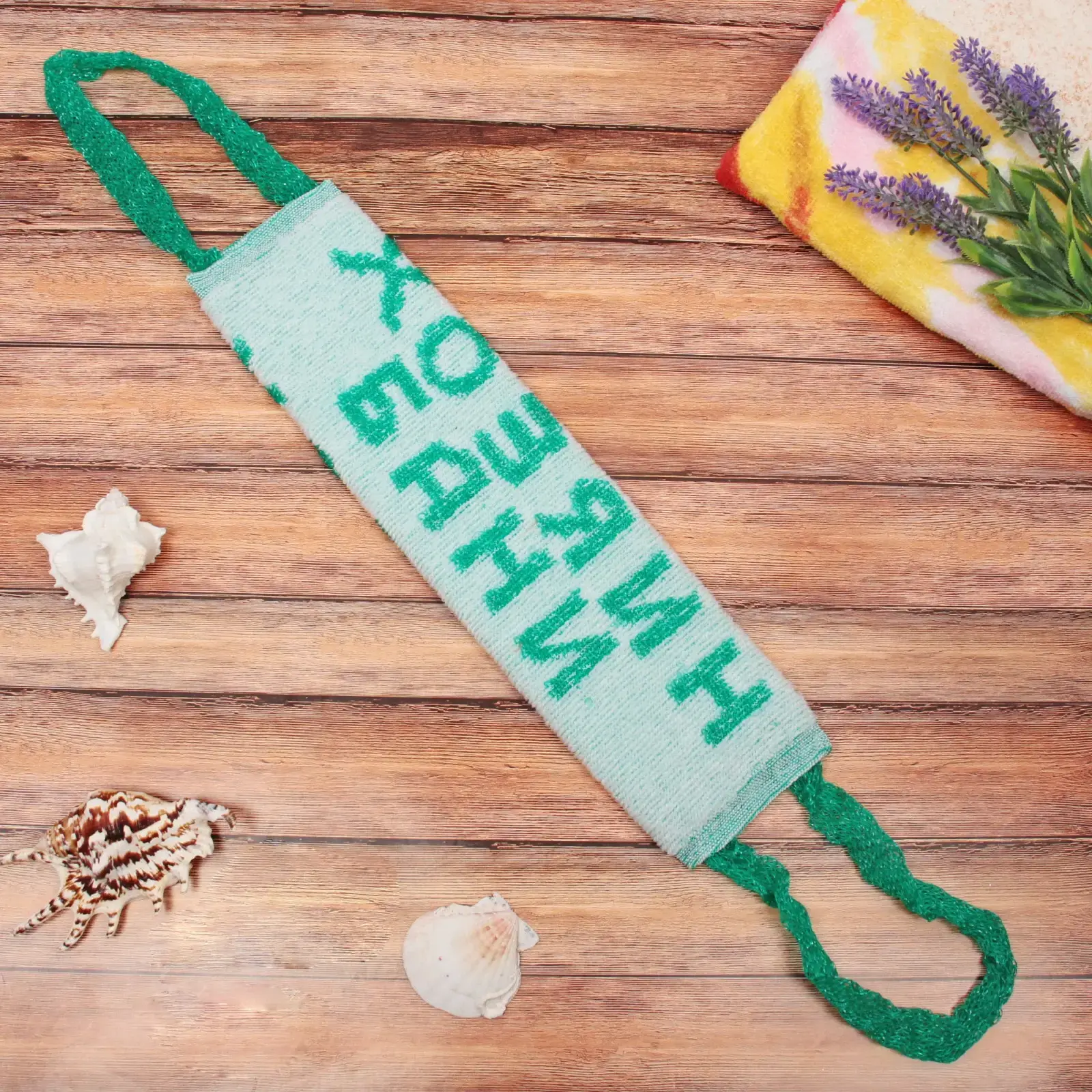 Размеры мочалки составляют 11х35 см, что делает ее компактной и удобной для хранения. Светло-голубой цвет с зеленым текстом «Хозяин бани» добавляет эстетическую привлекательность, а плетеная структура завязок обеспечивает надежность. Этот аксессуар станет отличным дополнением к вашему банному ритуалу, придавая ему особый шарм и комфорт.