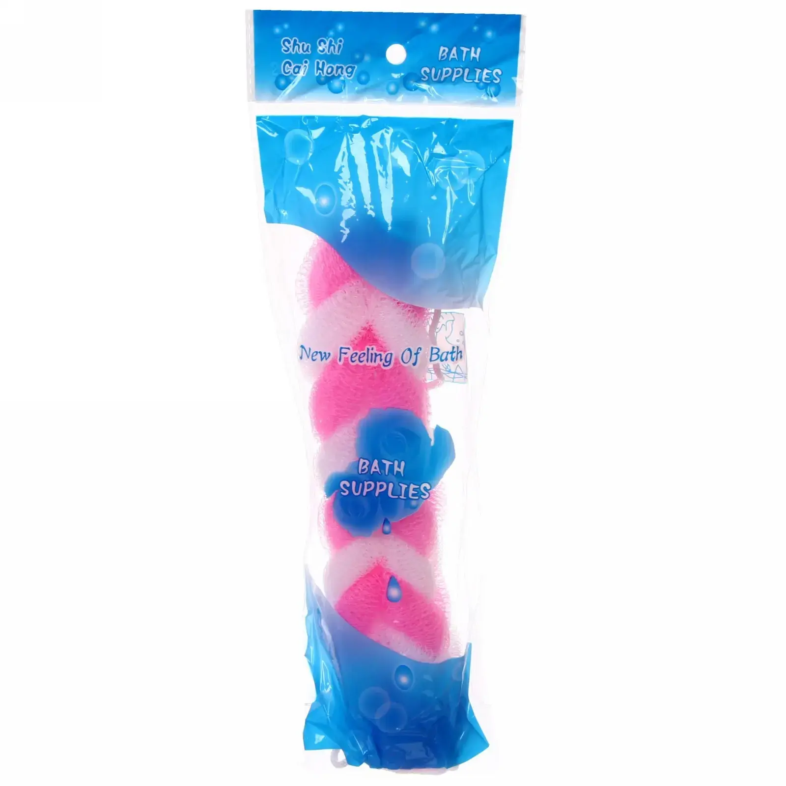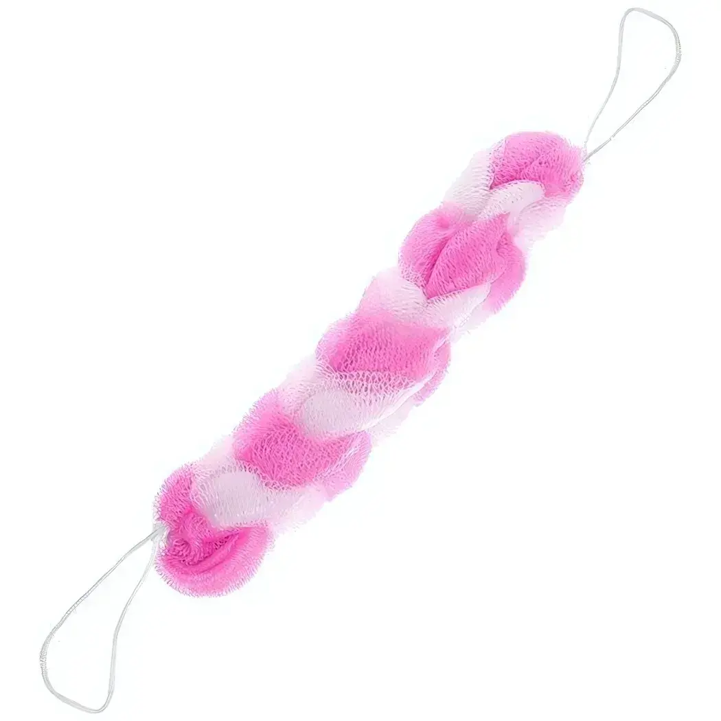 Размер мочалки составляет 25 см в длину и 5 см в ширину, что делает её компактной и удобной для хранения. Цветовая гамма включает розовый и белый, что добавляет яркости и стиля в ваш интерьер ванной комнаты. Мочалка легко очищается и быстро сохнет, что делает её практичным выбором для активного использования.