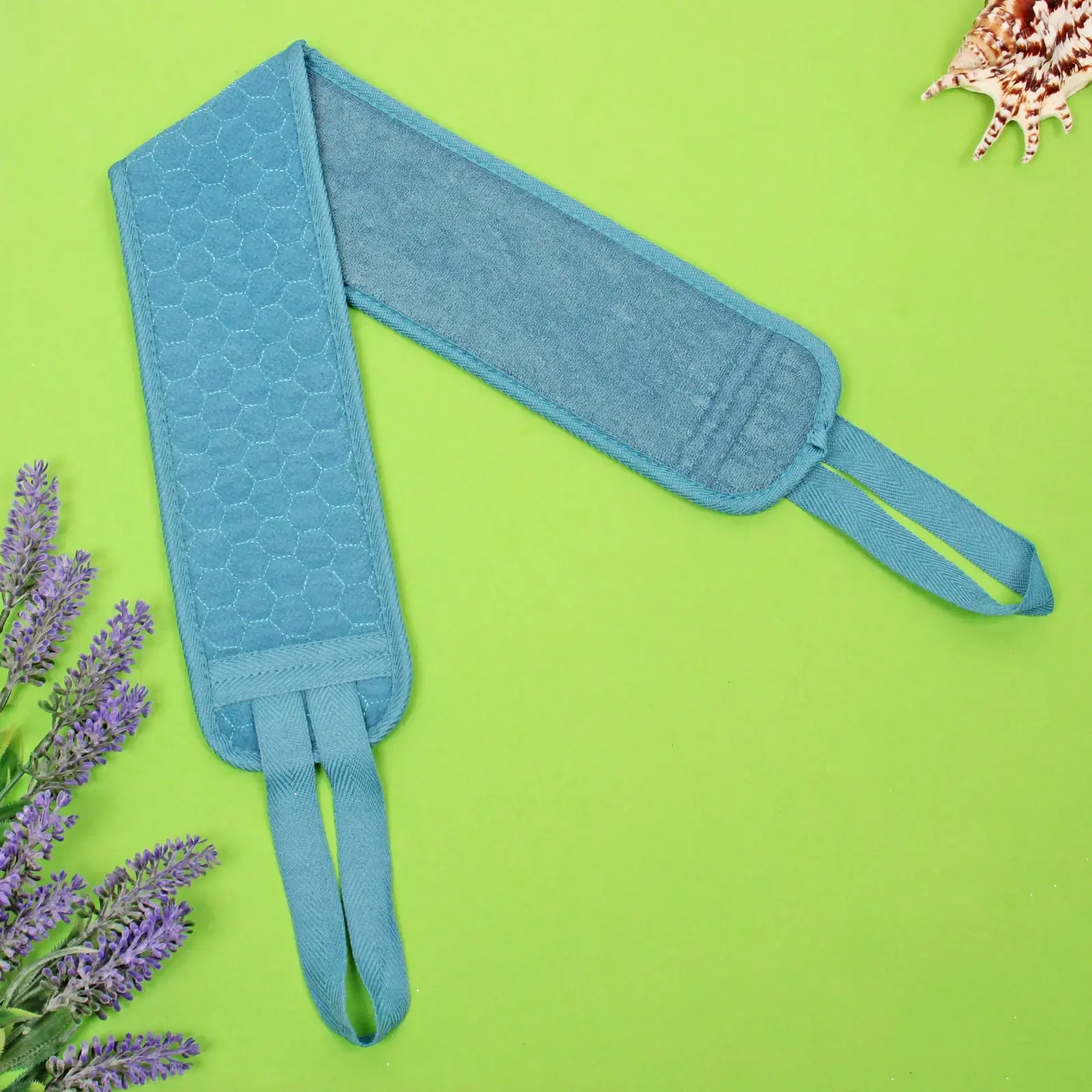 Мочалка предназначена для ежедневного использования в ванной. Она идеально подходит для очищения кожи и создания приятного ощущения свежести. Благодаря своим размерам 9х82 см, она удобно лежит в руке и позволяет эффективно использовать её как для мытья, так и для массажа кожи. Длинные ручки обеспечивают надежный захват, что делает процесс мытья более комфортным.