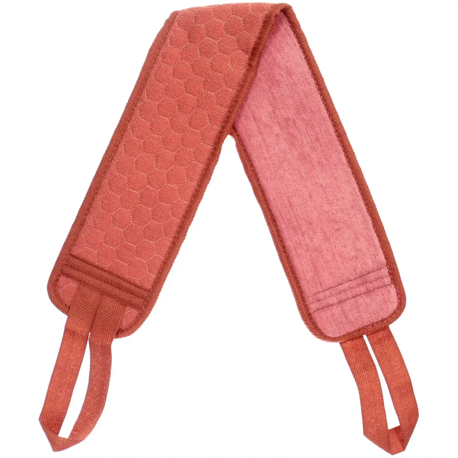 Выбирая эту мочалку, вы получаете не только стильный аксессуар, но и практичное решение для ежедневного ухода. Долговечный текстильный материал гарантирует, что мочалка прослужит вам долго, сохраняя свои свойства даже после многократных стирок. Удобные ручки позволяют легко держать мочалку в руках, а её текстурированная поверхность обеспечивает качественное очищение кожи, не травмируя её.