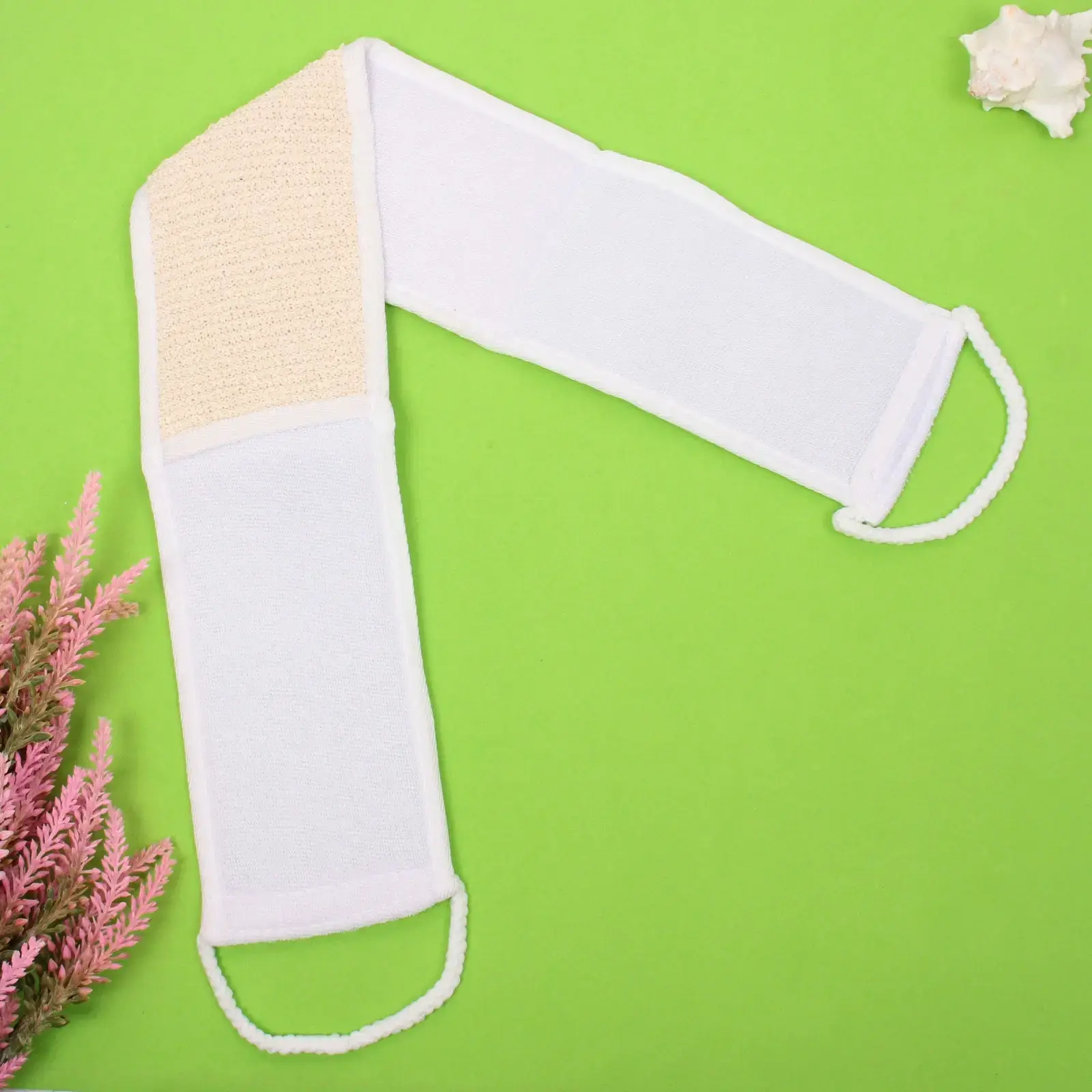 Мочалка подходит для большинства типов кожи, обеспечивая бережное очищение и массаж. Она идеально подходит для ежедневного использования, а также для расслабляющих процедур после долгого дня. Благодаря комбинированному материалу, мочалка обеспечивает отличное пенообразование и быстро высыхает, что делает её практичным выбором для любого дома.