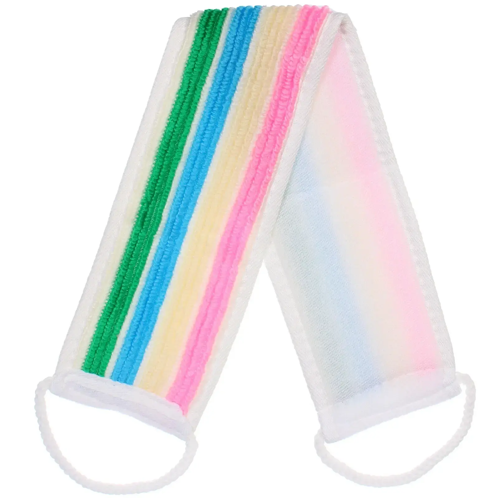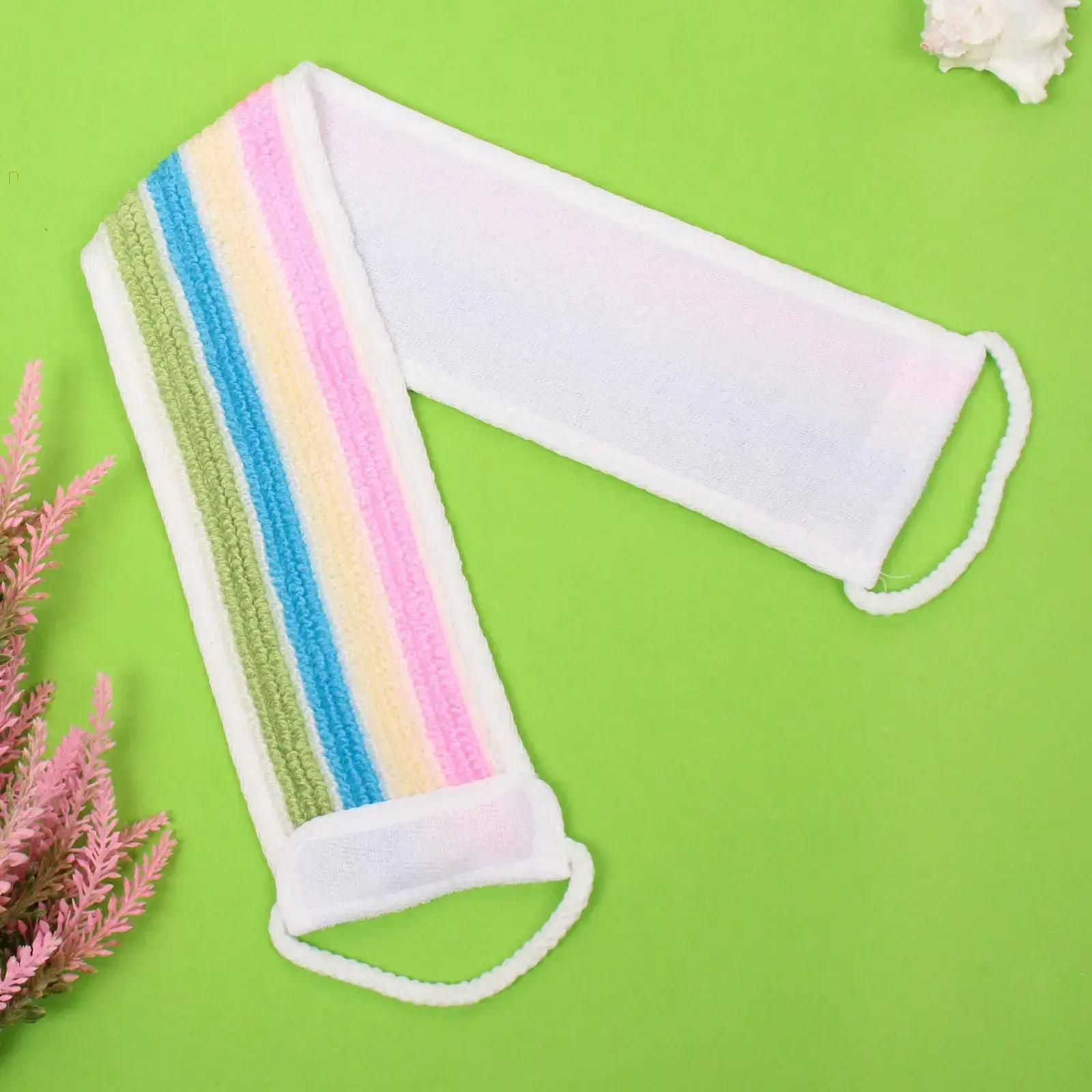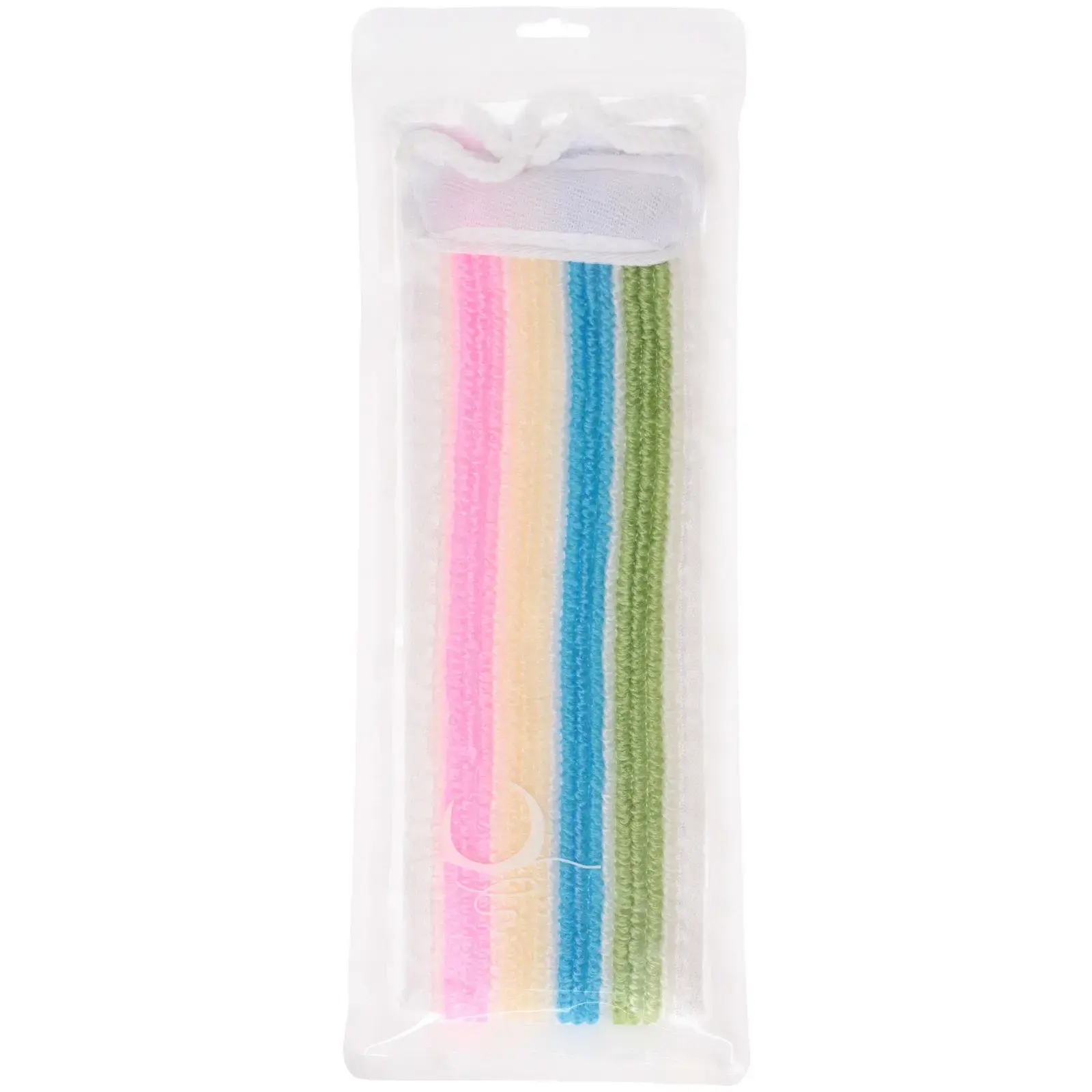 Мочалка предназначена для ежедневного использования в ванной или душе. Она подходит как для взрослых, так и для детей, обеспечивая комфортное очищение кожи. Благодаря своей длине в 59 см и ширине в 10 см, мочалка легко охватывает руку, что делает процесс мытья более эффективным и приятным.
