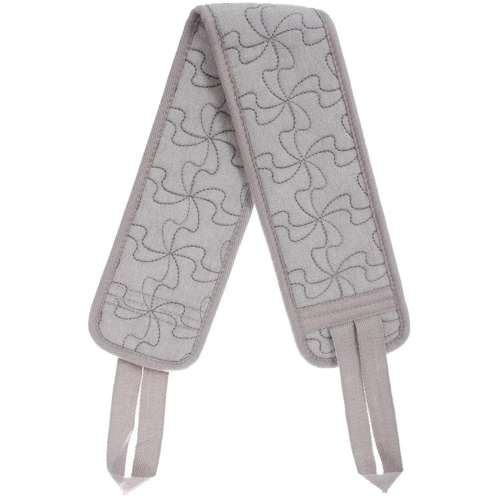 Мочалка идеально подходит для всех типов кожи, включая чувствительную. Она легко крепится благодаря двум петелькам на концах, что позволяет удобно использовать её в душе или ванной. Размер 10х60 см делает её универсальной для любого пользователя, а светло-серый цвет добавляет стильный акцент в вашу ванную комнату.