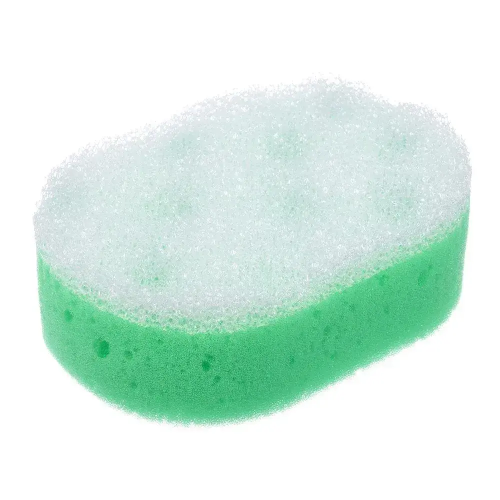 - Пористая структура поролона — создает обильную пену и экономит моющее средство