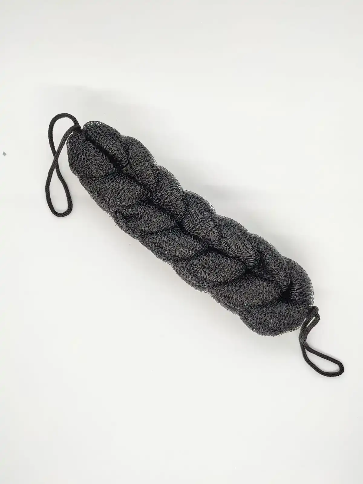 - Прочные шнуры позволяют фиксировать мочалку на руке