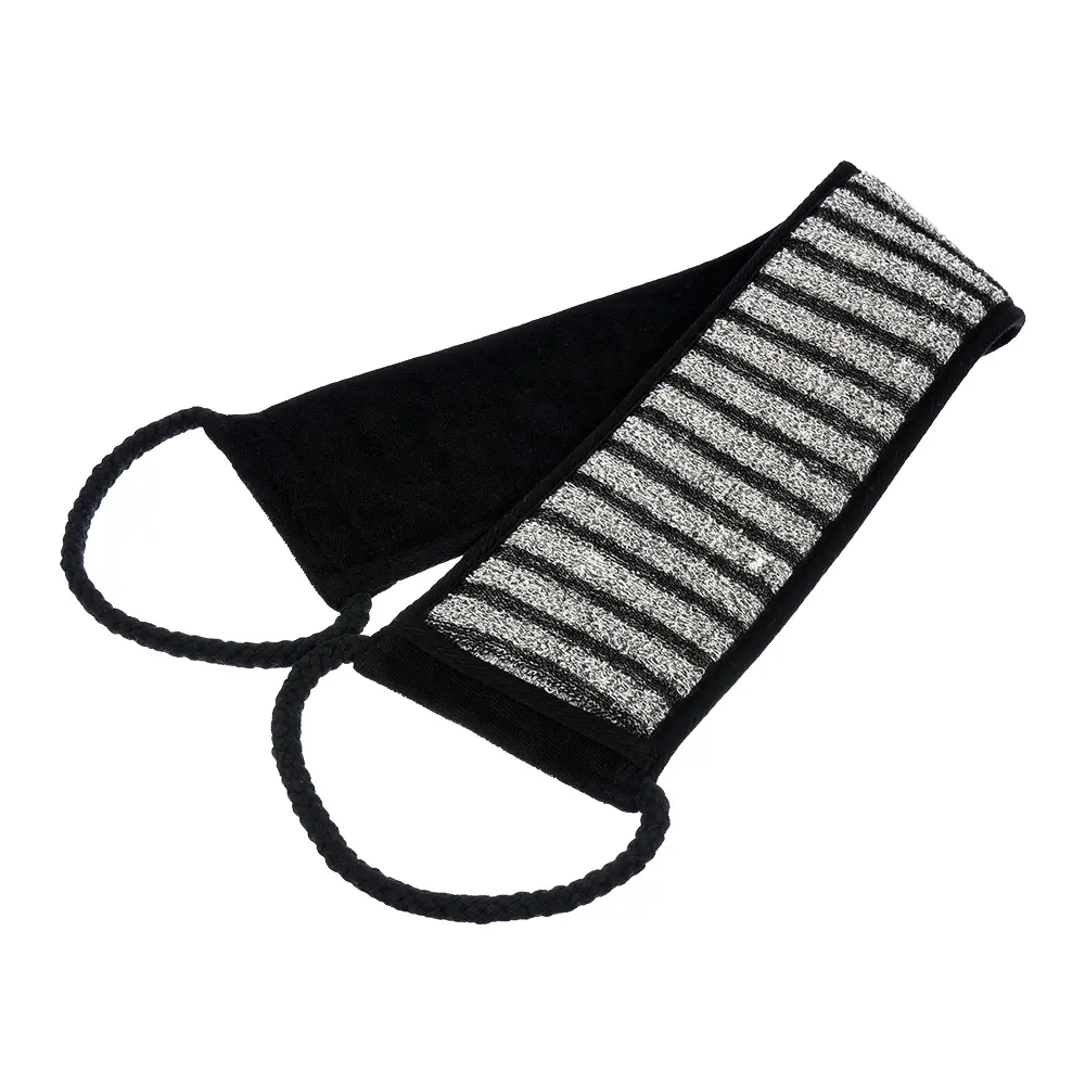 Мочалка «мужская» лента, 10×74 см, с ручками, medium/soft, черно‑серый, для бани и сауны, «Банные штучки»