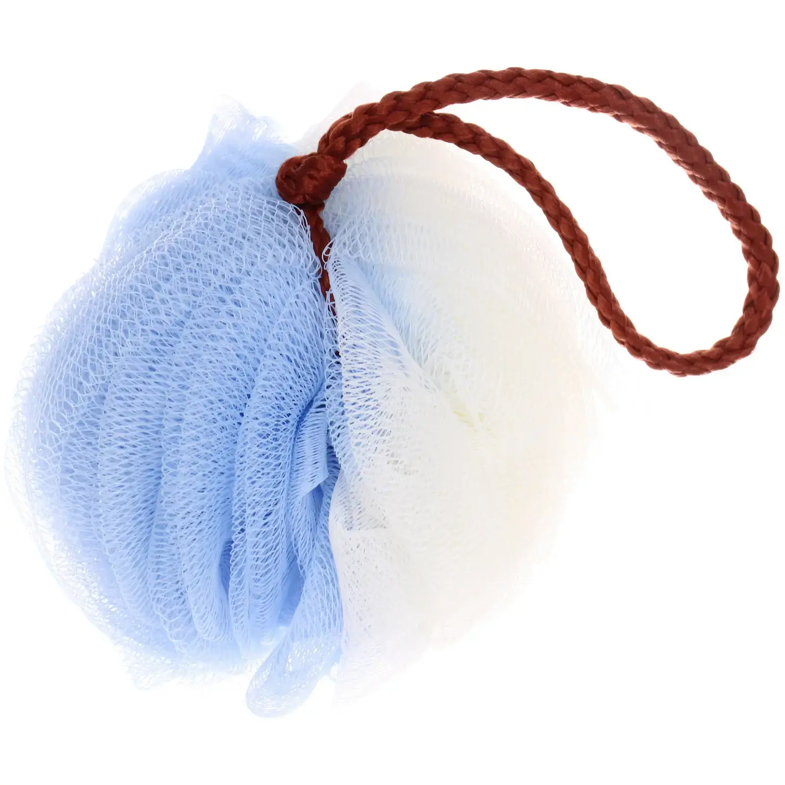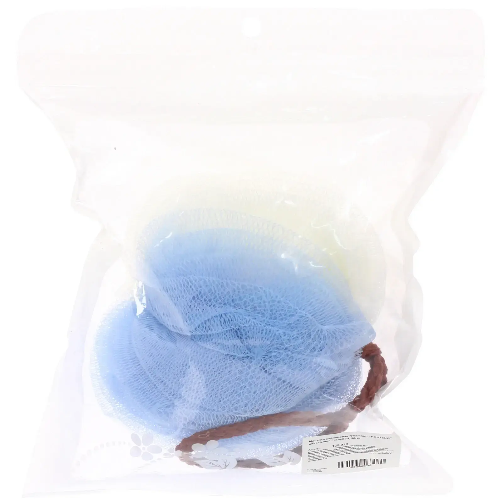 Мочалка имеет средний размер и выполнена из прочного нейлона, что гарантирует её долговечность. Упаковка с зип-застежкой позволяет удобно хранить мочалку, защищая её от загрязнений. Цвета: белый и светло-голубой, с плавным переходом между ними, что делает её стильным дополнением к вашему интерьеру ванной.