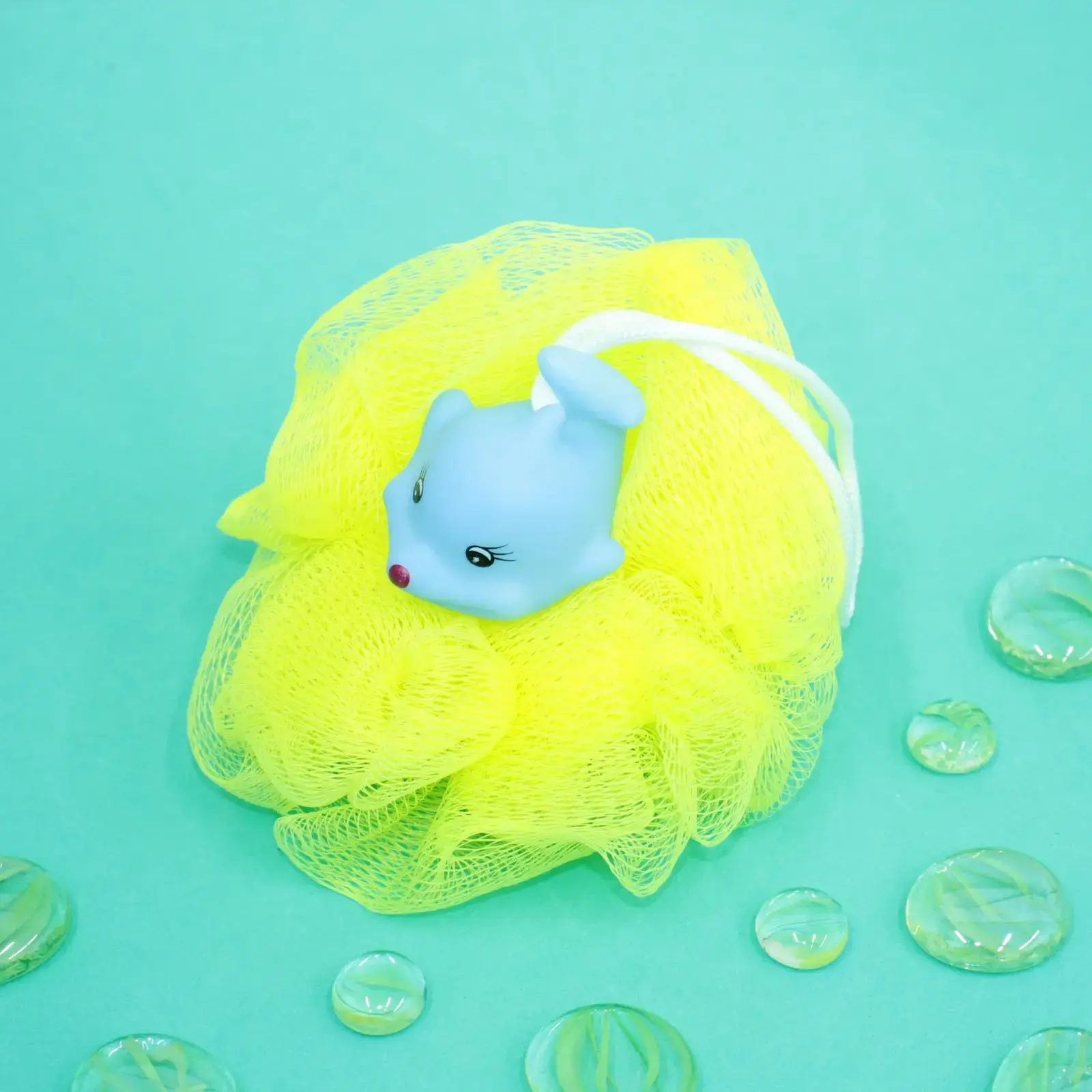Мочалка имеет желтый цвет и украшена голубой фигуркой дельфина, что делает ее не только функциональным, но и стильным аксессуаром для ванной. Она станет отличным подарком для вашего малыша или замечательным дополнением к детской ванной комнате. Не упустите возможность сделать купание более веселым и комфортным!