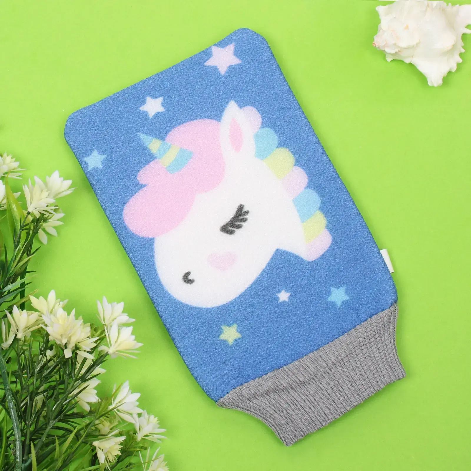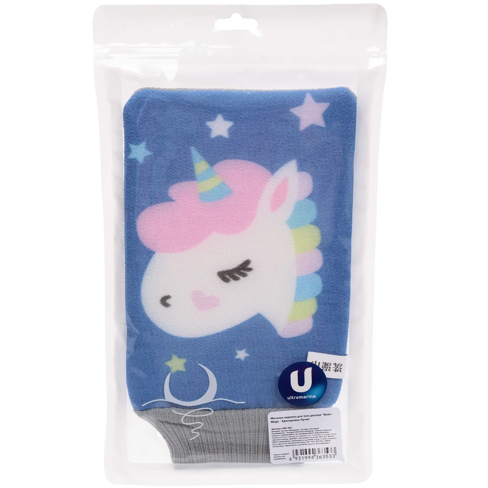 Мочалка-варежка идеально подходит для детей, делая купание веселым и безопасным. Она легко надевается на руку, что позволяет родителям удобно мыть малыша, не беспокоясь о травмах. Яркий дизайн с изображением единорога привлечет внимание вашего ребенка и сделает время в ванной более увлекательным.