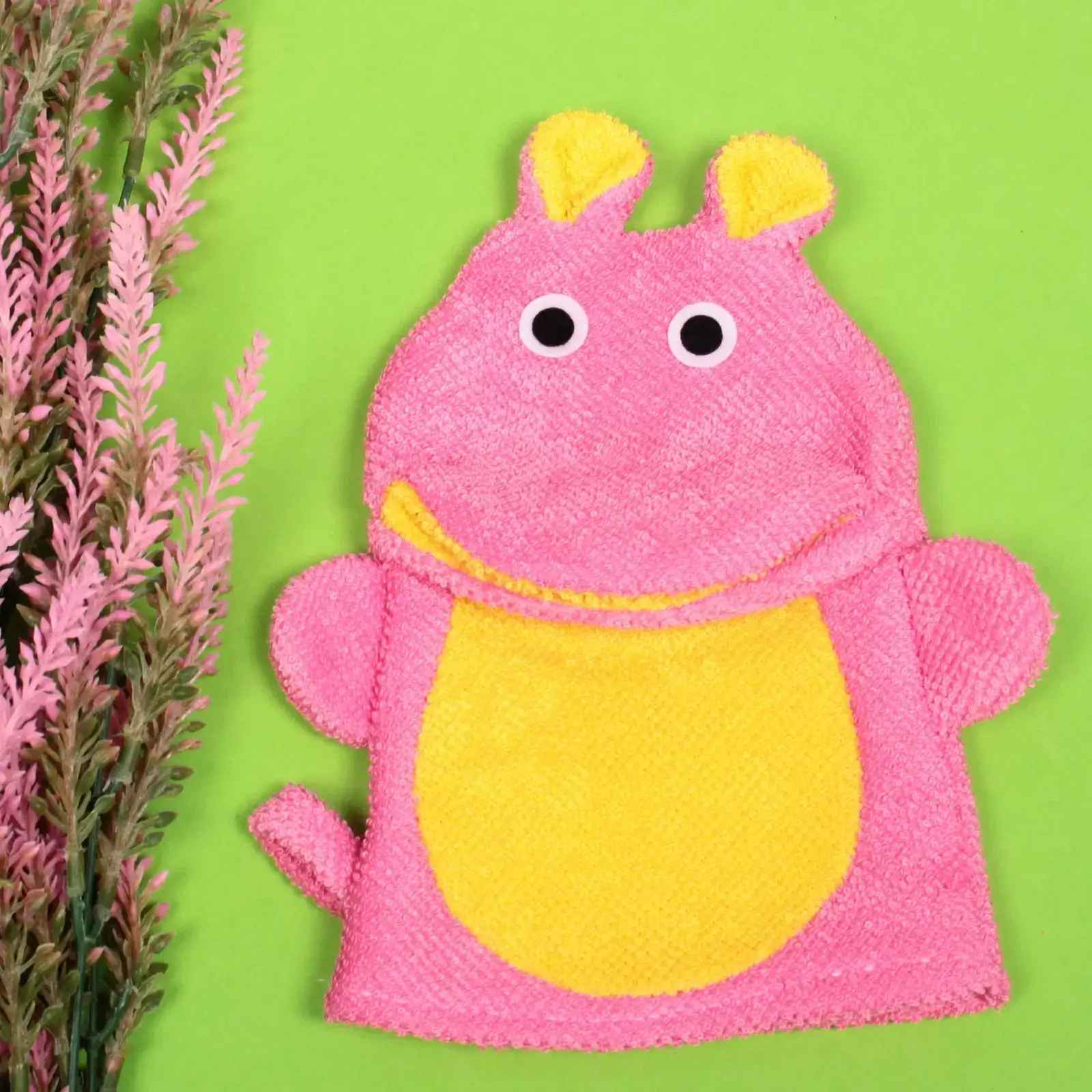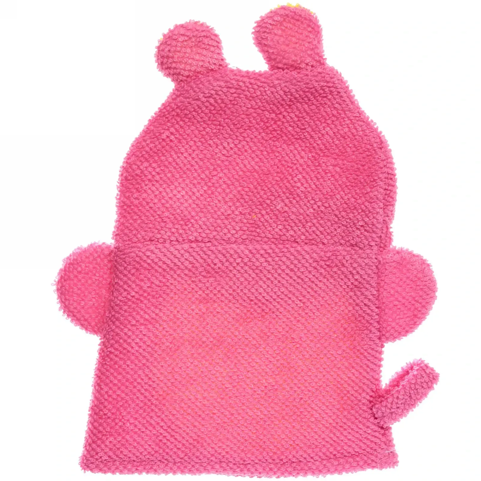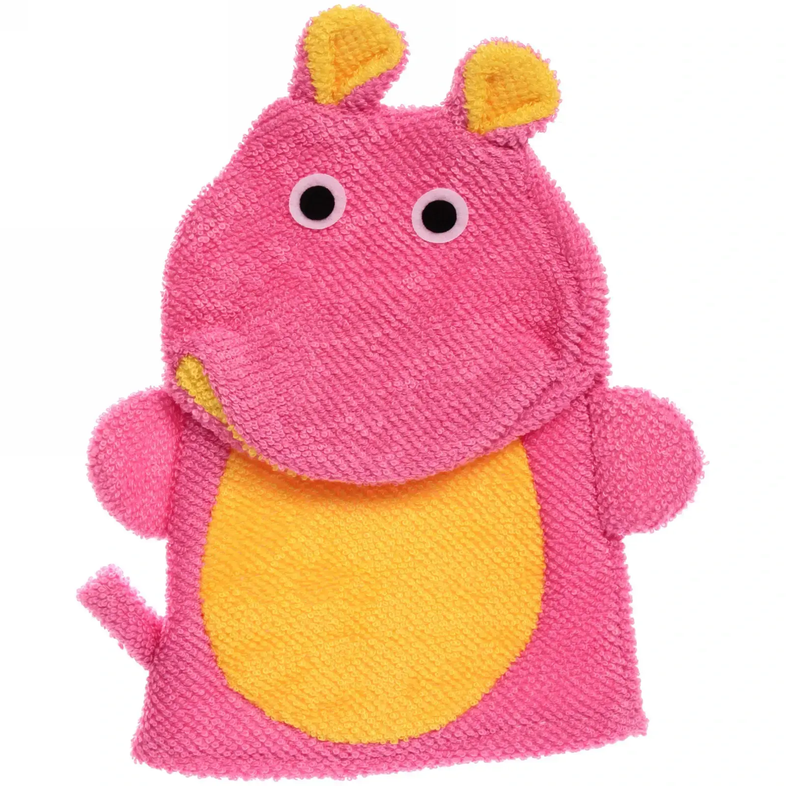 Мочалка-варежка детская «Water Magic - Бегемотик Лэсси», мягкая для нежной кожи, текстиль, 17х23 см, розовый