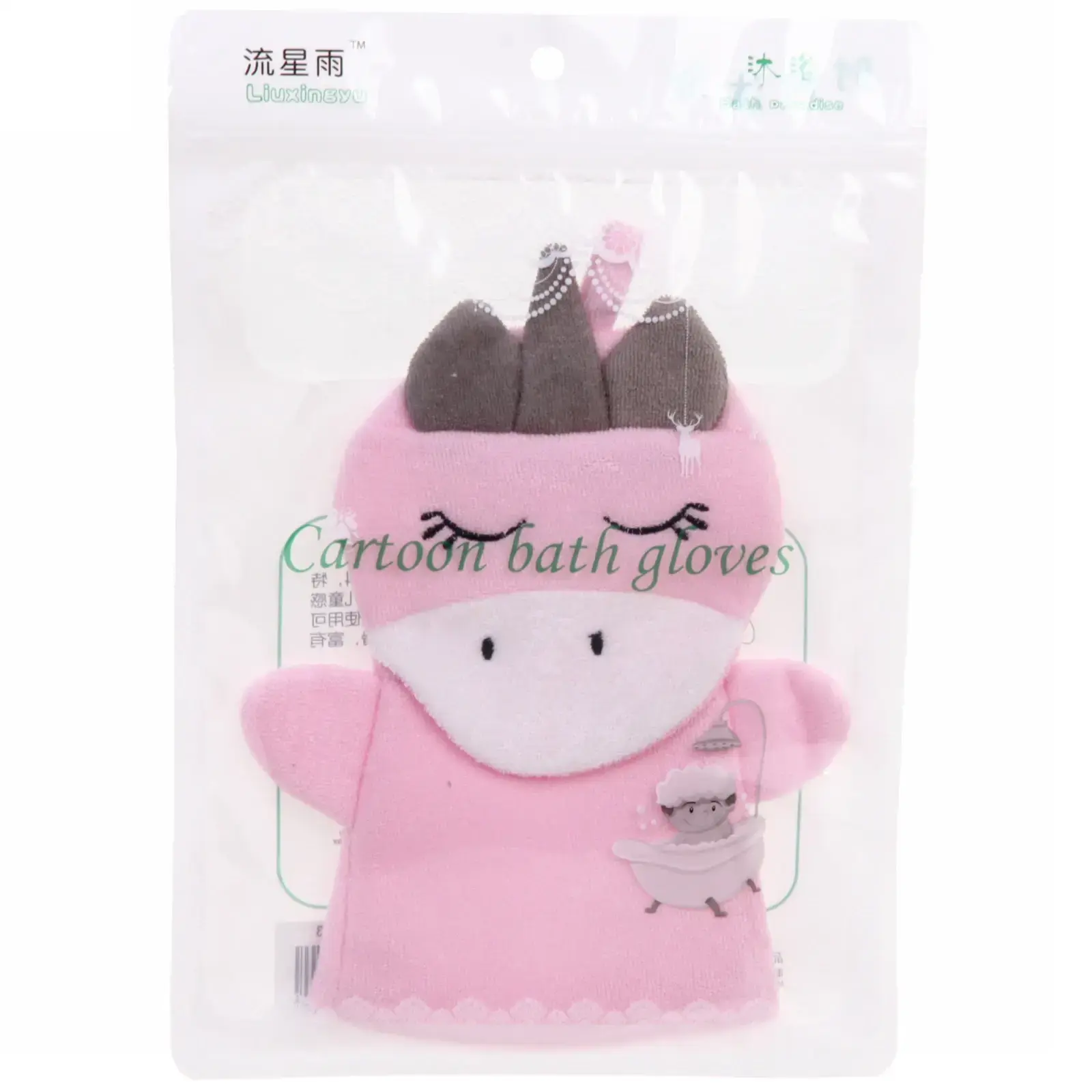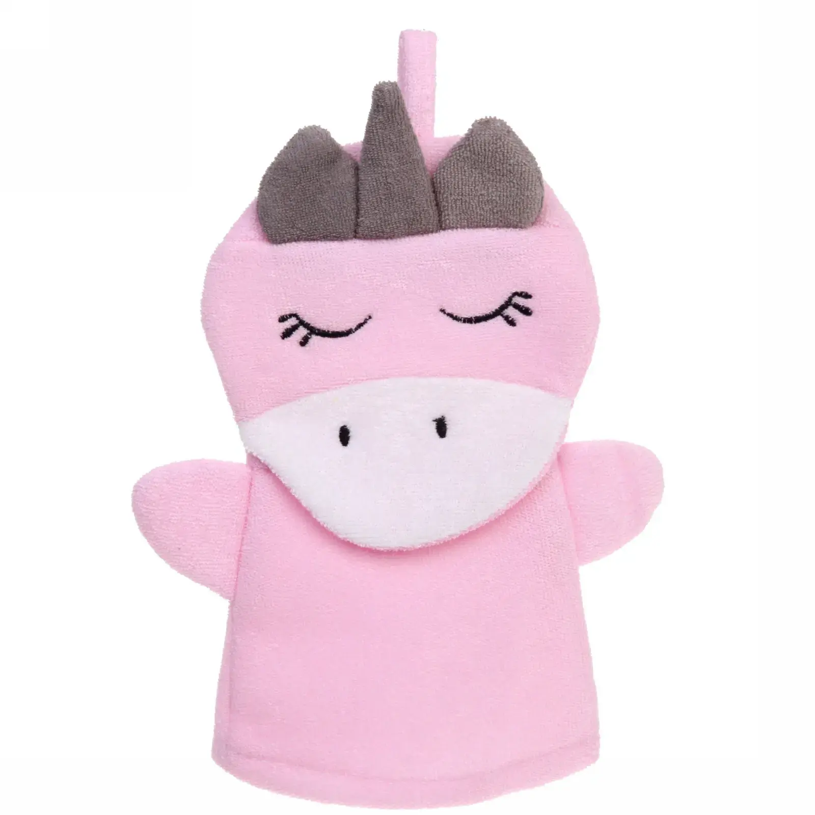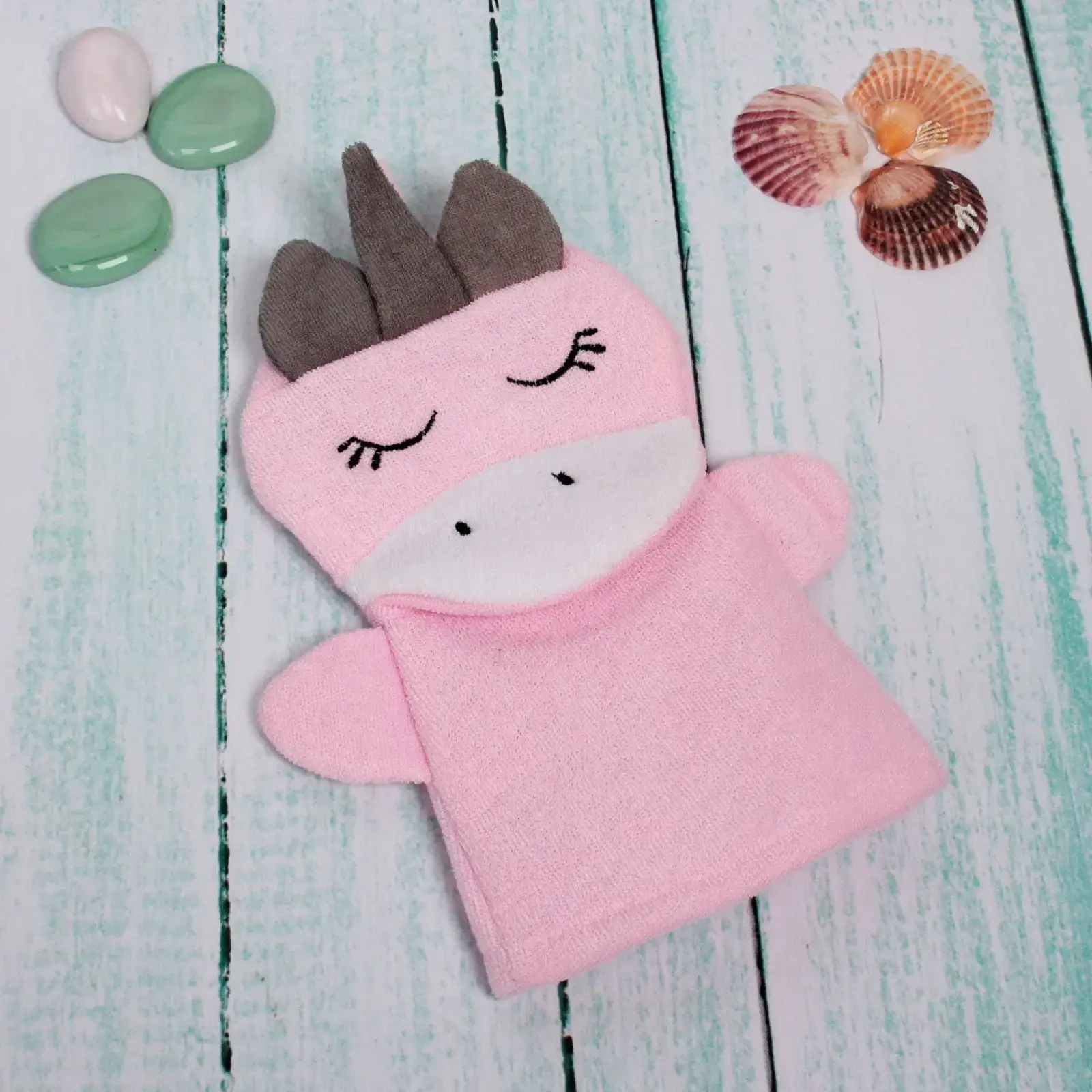 Мочалка-варежка детская «Единорожек Люси», розовый цвет, текстиль, 17х24 см