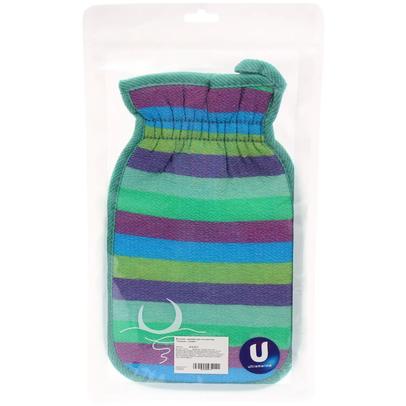 Размер мочалки составляет 14х24 см, что делает её компактной и удобной для хранения. Мультицветный дизайн добавляет яркости и настроения в вашу ванную комнату. Упакована в ZIP пакет, что обеспечивает удобство хранения и транспортировки.