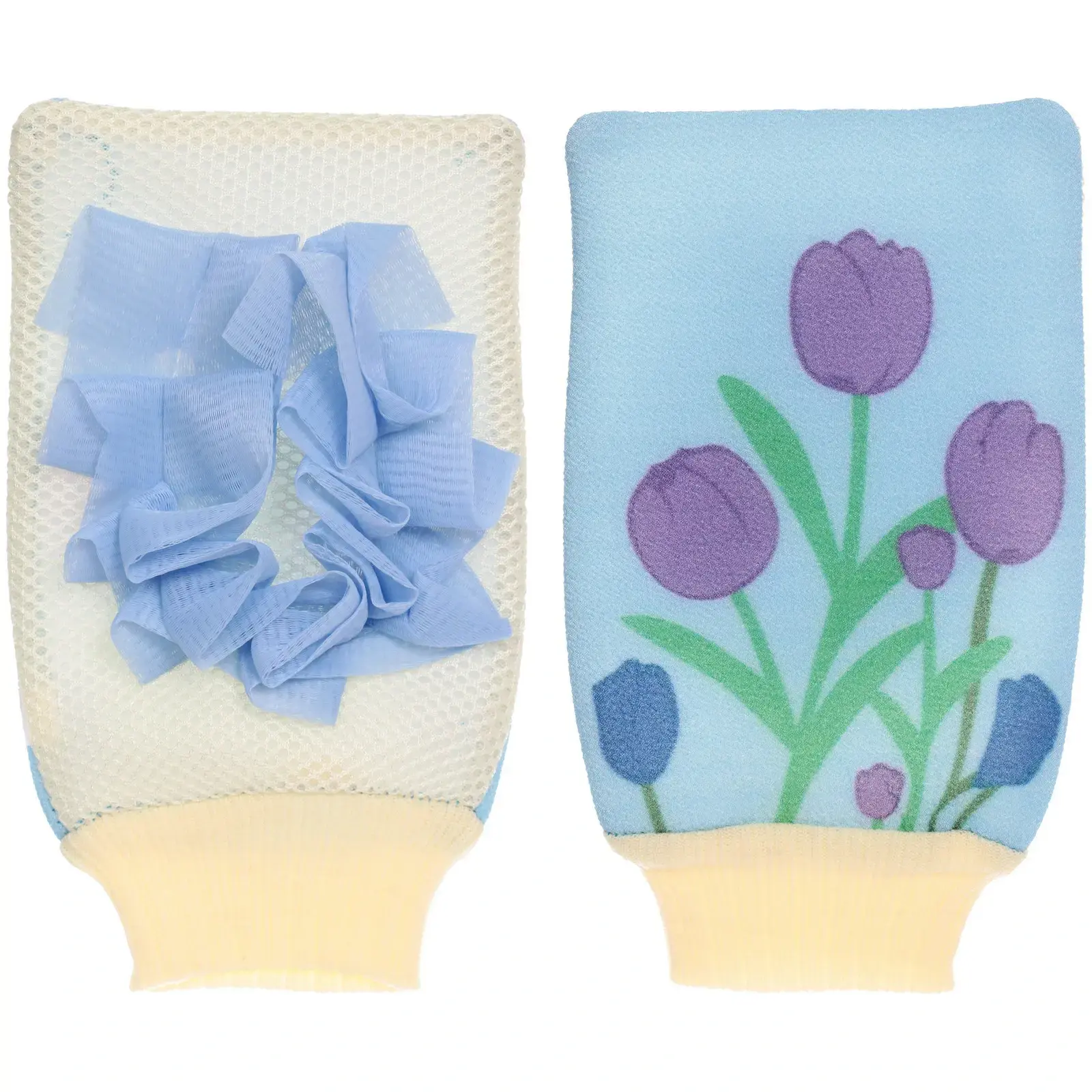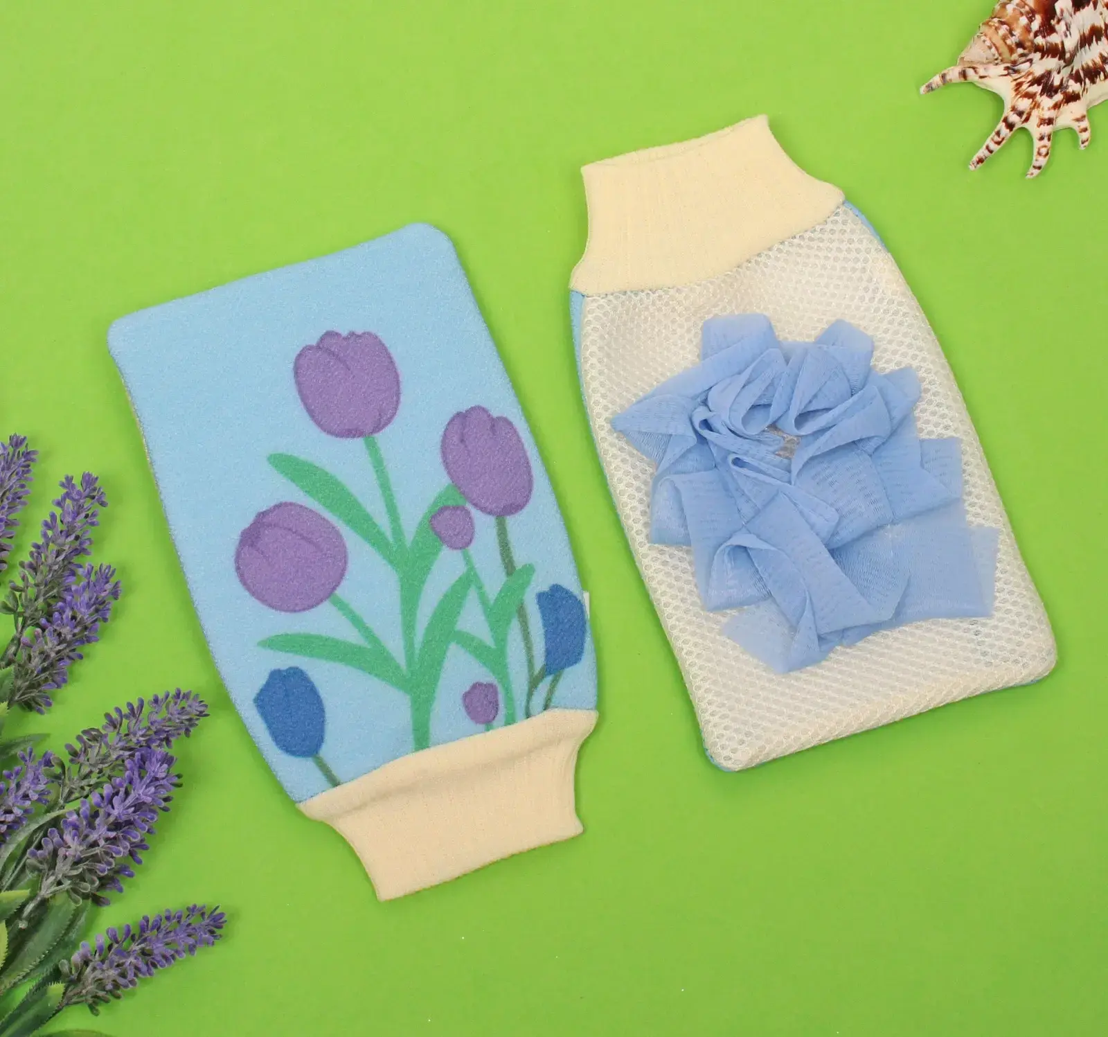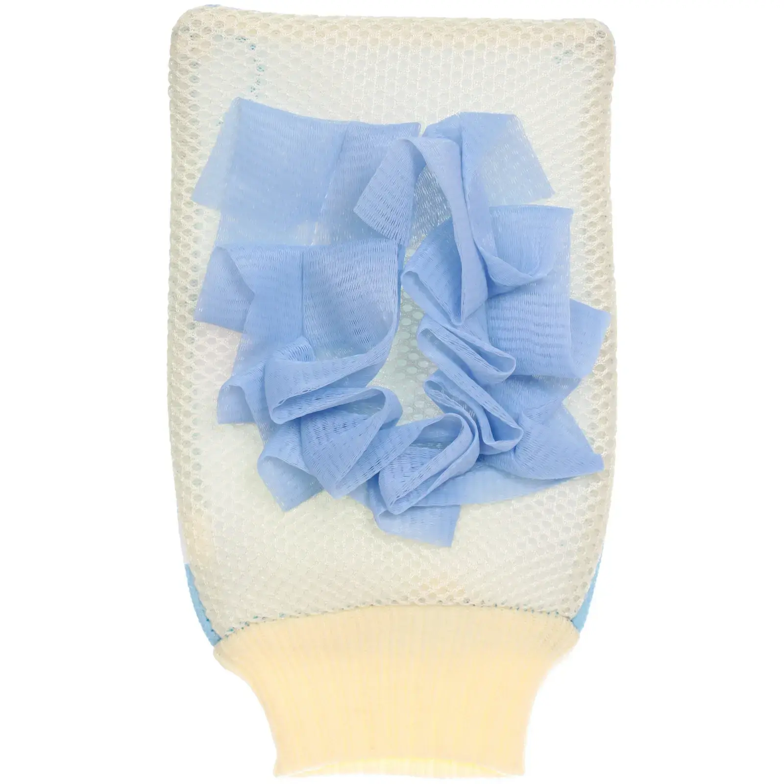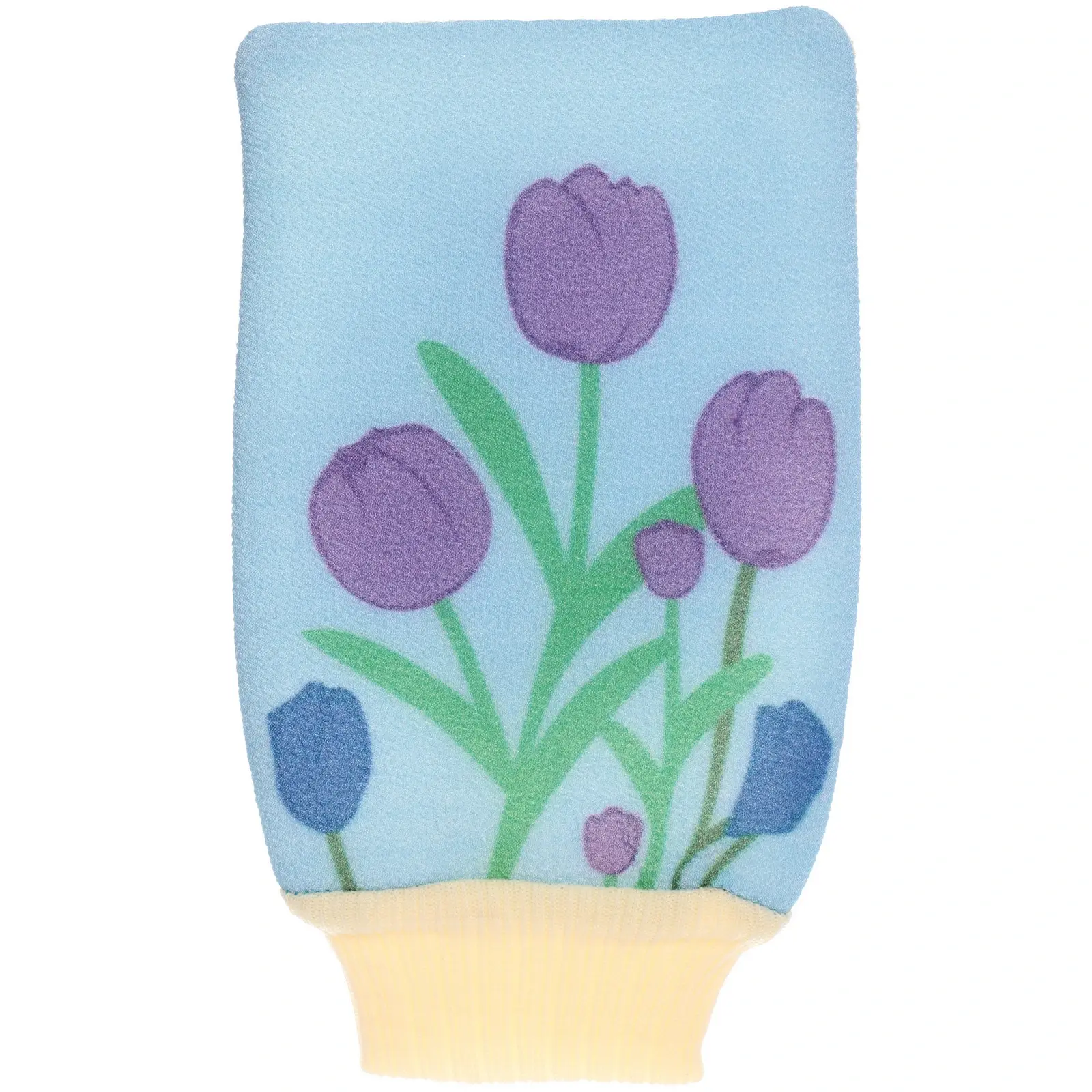Эта мочалка-варежка имеет размеры 24х15 см, что делает ее удобной для использования как в ванной, так и в душе. Эластичные манжеты на запястье обеспечивают надежную фиксацию, предотвращая скольжение во время мытья. Мочалка выполнена в нежном голубом цвете с красивым цветочным узором, что добавляет эстетики в ваш ритуал ухода за собой.