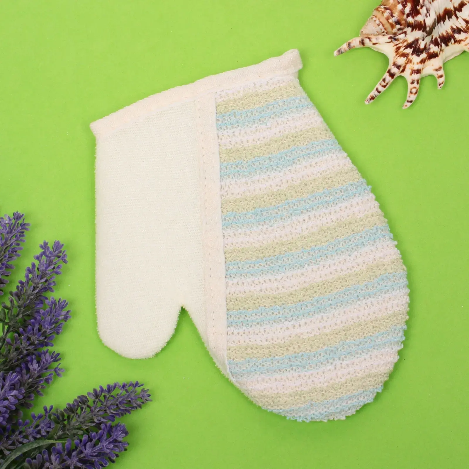 Эта мочалка-варежка может использоваться как для массажа, так и для пилинга, что делает её универсальным инструментом для ухода за телом. Просто наденьте варежку на руку и используйте её во время душа или ванны, чтобы улучшить кровообращение и сделать кожу более гладкой и упругой.