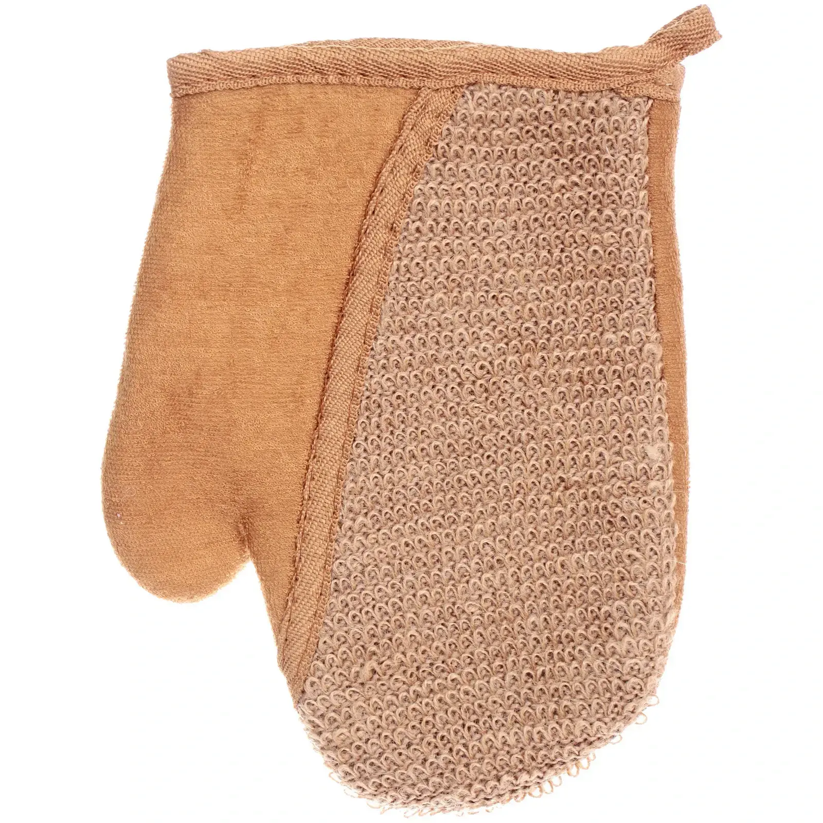 Размер мочалки составляет 18х22 см, что делает её удобной для большинства рук. Цвет орехово-коричневый придаёт ей стильный и современный вид. Изготовлена из текстиля, что обеспечивает мягкость и комфорт при использовании. Упакована в ZIP пакет, что позволяет сохранить её в чистоте и защищенности до момента использования.